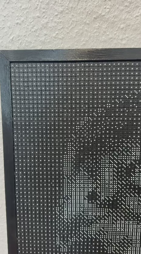 Information: Anna is a contemporary artist originally from Ukraine and currently based in Germany. Her work explores image-making through unconventional materials, transforming thousands of dice into large-scale compositions. Using objects traditionally associated with chance, she construct carefully arranged images that reveal themselves from a distance. Her practice moves between mosaic, pixel art, and sculpture, focusing on how repetitive elements can form recognizable figures, symbols, and visual narratives.
