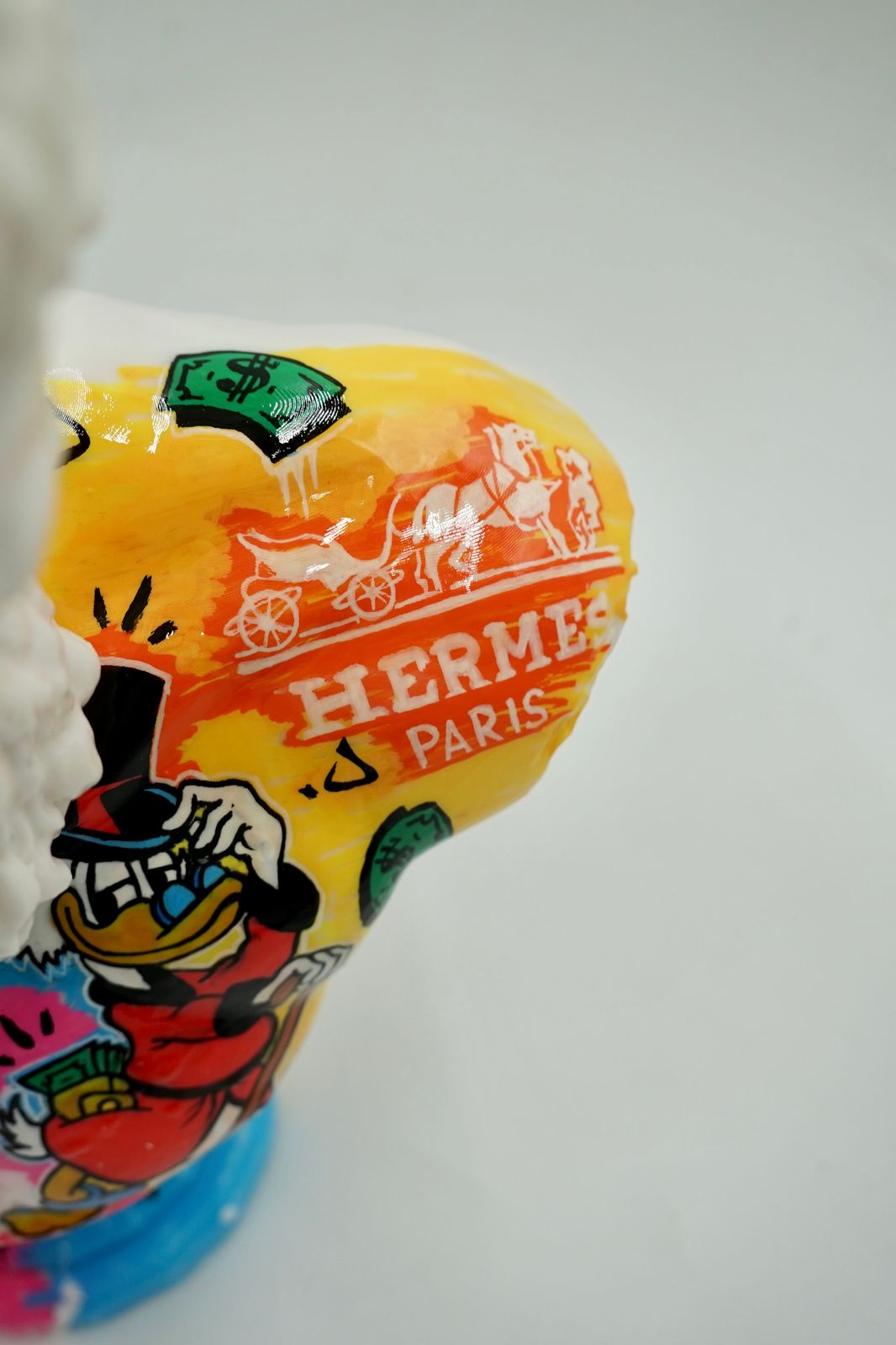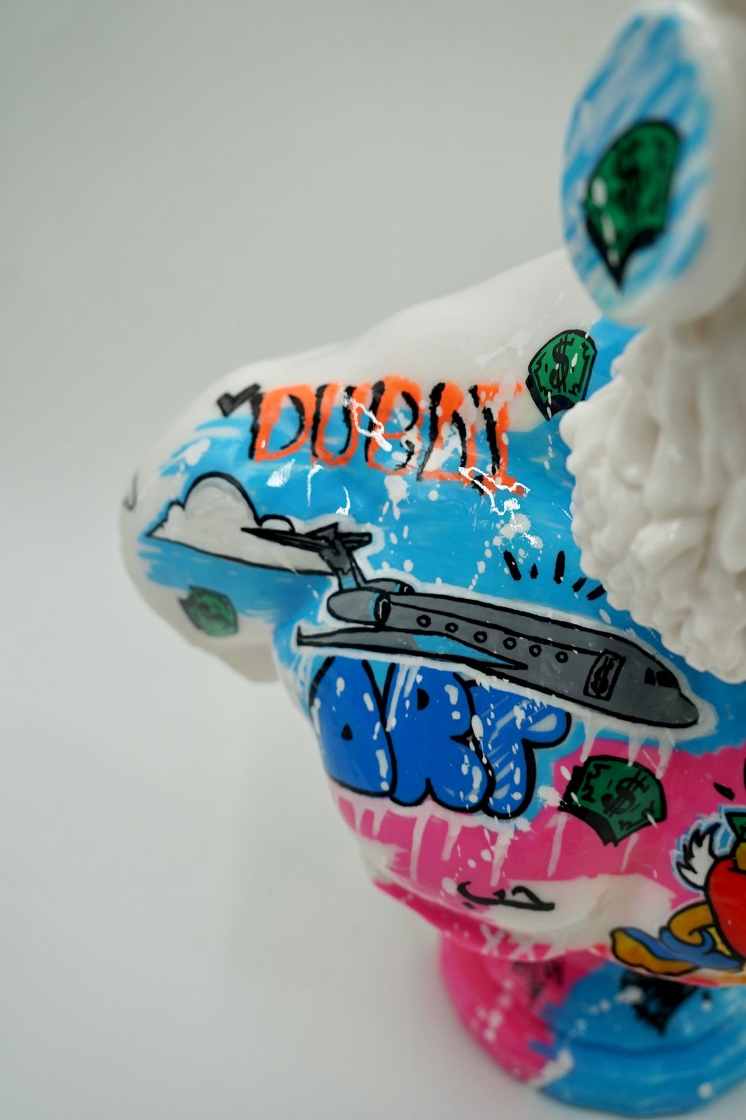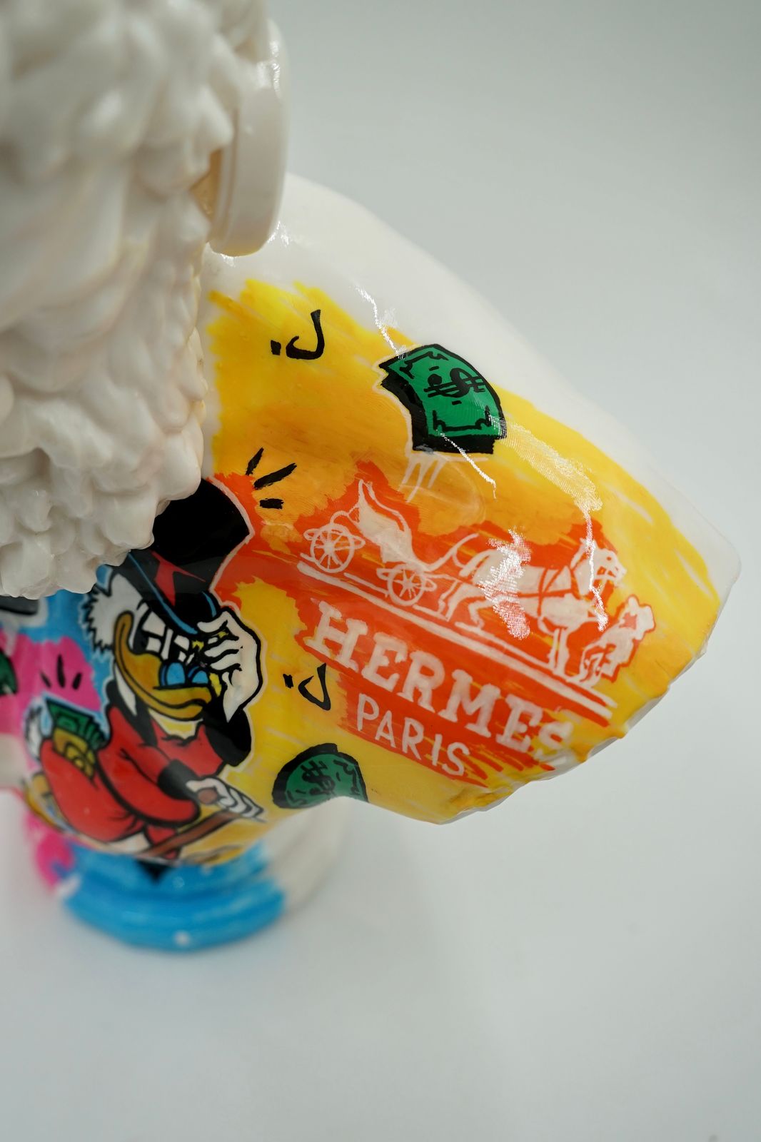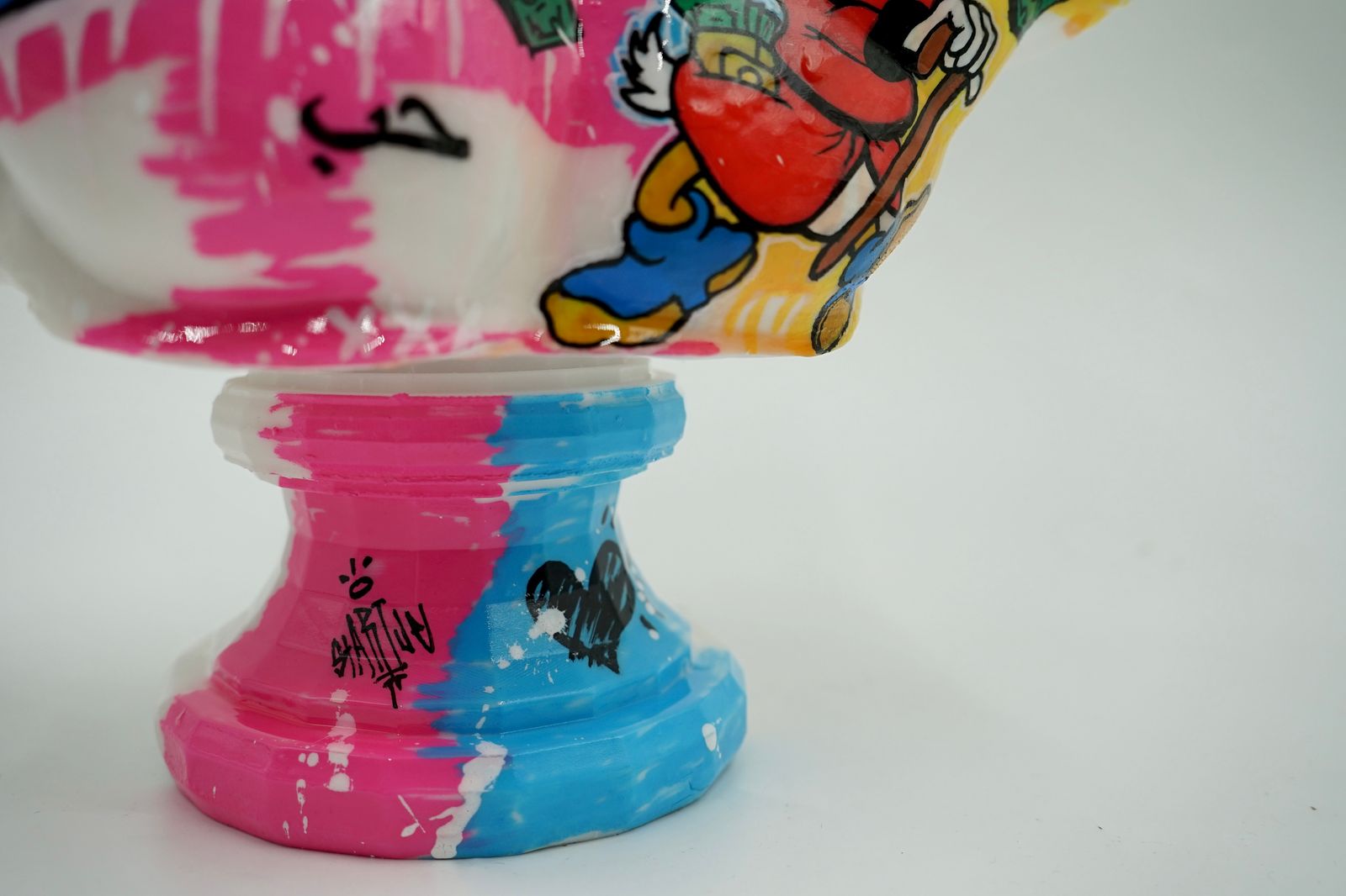 Information: Michail, born in Greece in 1992, has developed different techniques over the years. He works mainly with alabaster sculptures, sprays and markers, creating colorful works of art full of contrasts - not only visually, but also in their meaning. Whether painting or sculpture, Michail takes these great examples of Greek beauty norms and adds a twist to our modern culture. With spray paint and markers, he covers ancient deities with symbols, signs and labels that reflect today's cultural "obsessions" - what 21st century culture thinks and dreams about. His mode of expression depicts the transformation of our world and, transforming the statues of ancient Greece into a new art, clearly shows the lack of order in the new world. Michail lives and creates on the island of Mykonos.