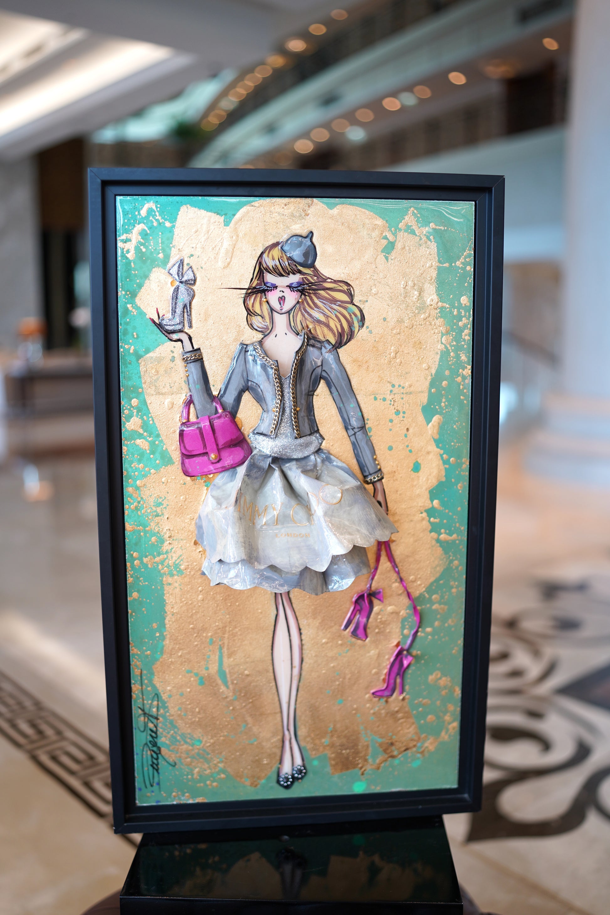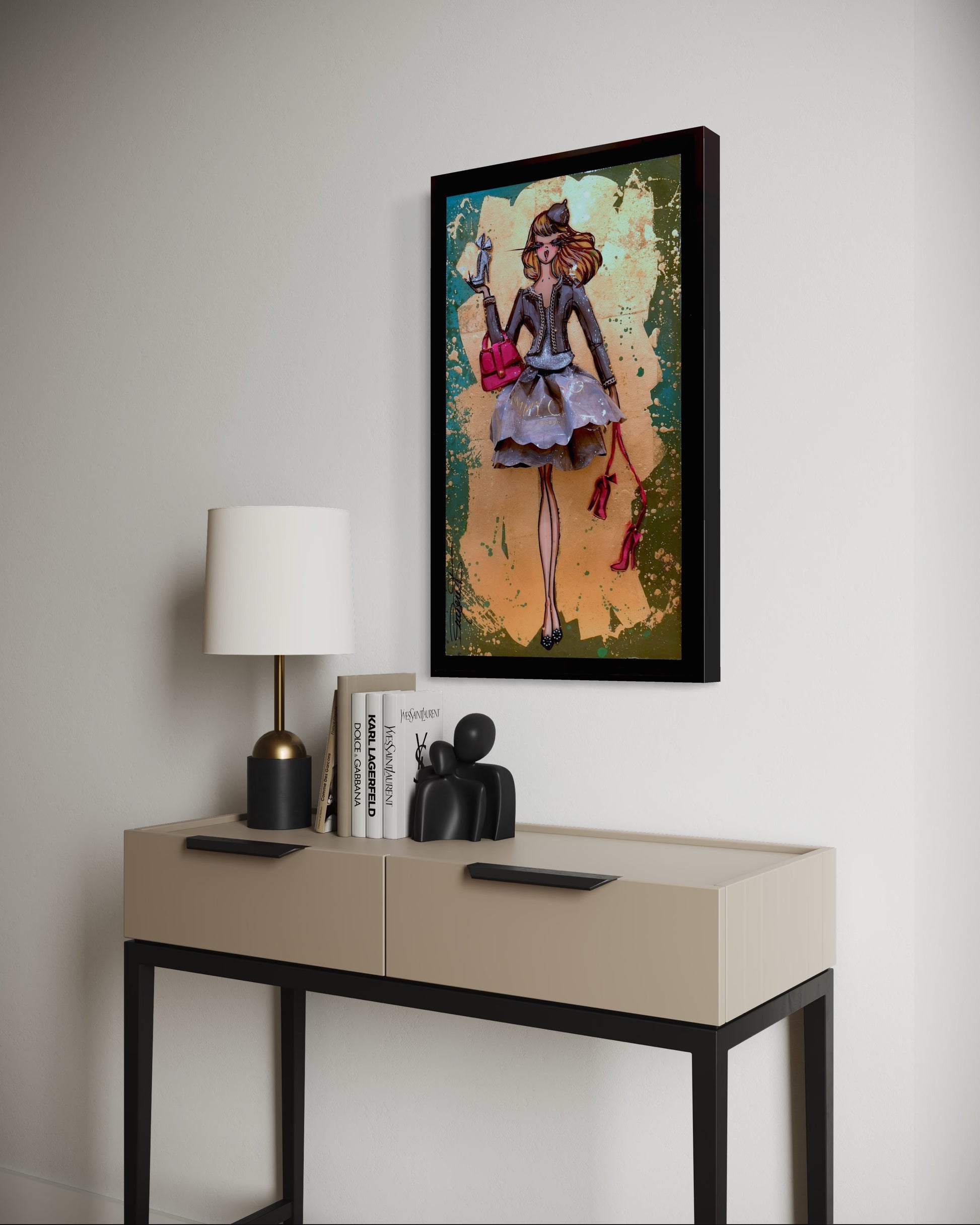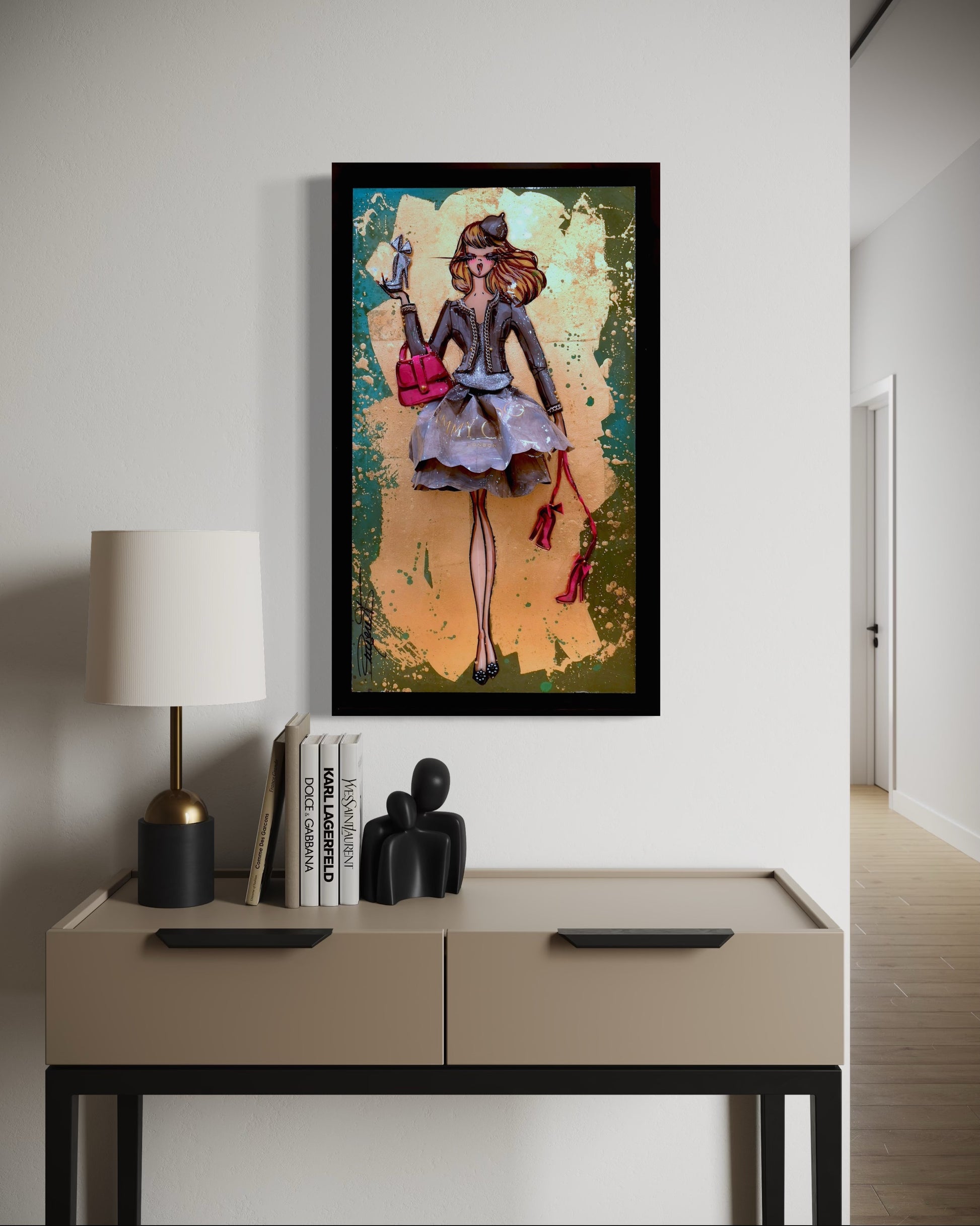Information : Rachel, stylist by trade, created her heroine more than 10 years ago. We call it ''La Parisienne'': The wavy hair, the dominance of gold by Gustav Klimt, the audacity of Toulouse Lautrec and the modernity of Edmond Kiraz have greatly influenced Rachel since her early childhood. Thanks to her creativity, Rachel thus composes three-dimensional works with a predominance for painting and recycling brand bags, perfume bottles from major brands such as Dior, Chanel, Hermès, Louis Vuitton, Gucci, YSL... of gold, pearls, flowers will come together under his brushstrokes to give unique works. Rachel is a popular French artist that the fashion world adores. Her works are present in the collections of major designers and international collectors.