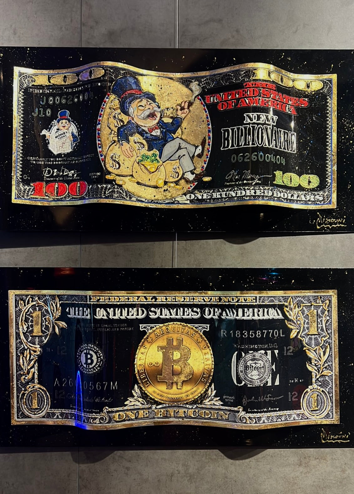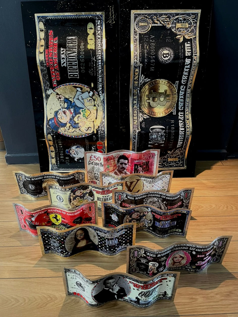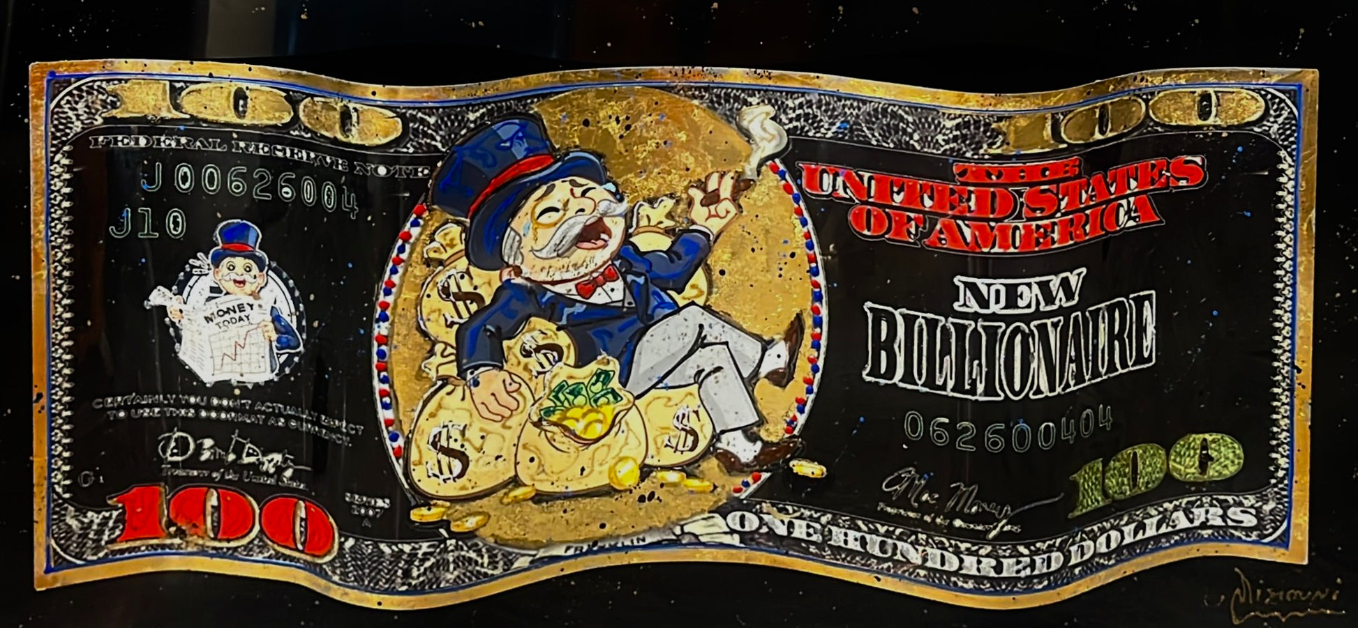 On meticulously crafted backgrounds, his work sits at the intersection of painting and sculpture. He creates his pieces on canvas, plexiglass, and even aluminum, which he skillfully undulates. He draws inspiration from imagery of comics, Disney, cartoons, superheroes, American sports teams, and more. He also enjoys painting his hometown, Paris.