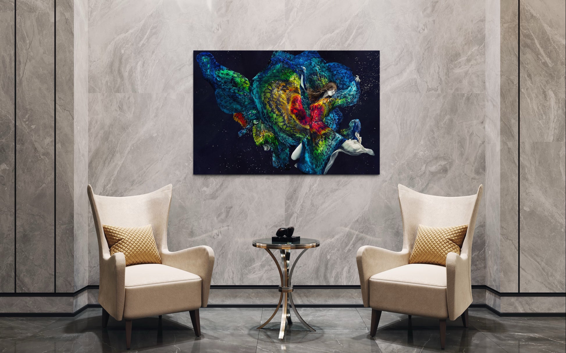 Information about the series: Underwater is a collaboration between the artist photographer and a super production for Numéro magazine, carried out in real underwater conditions with professional divers.
