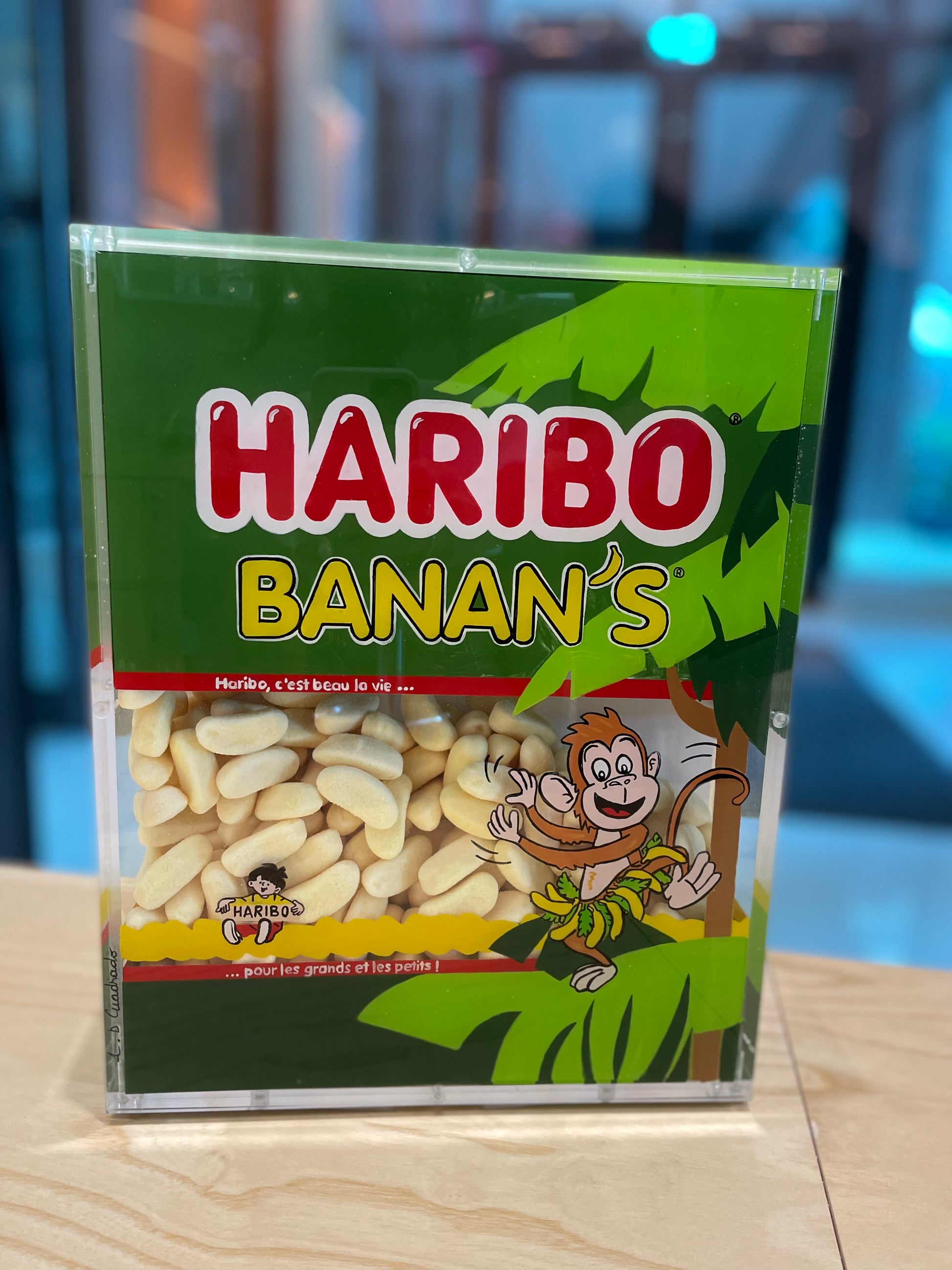 The image and memory of these products and brands is an actual echo to our child’s remembrances and an appeal to our taste buds : Coca-Cola, Hollywood chewing-gum, Tagada strawberries, Car en Sac, Marshmallows, Haribo Dragibus, Carambar, Malabar, Krema candies, Danone etc…