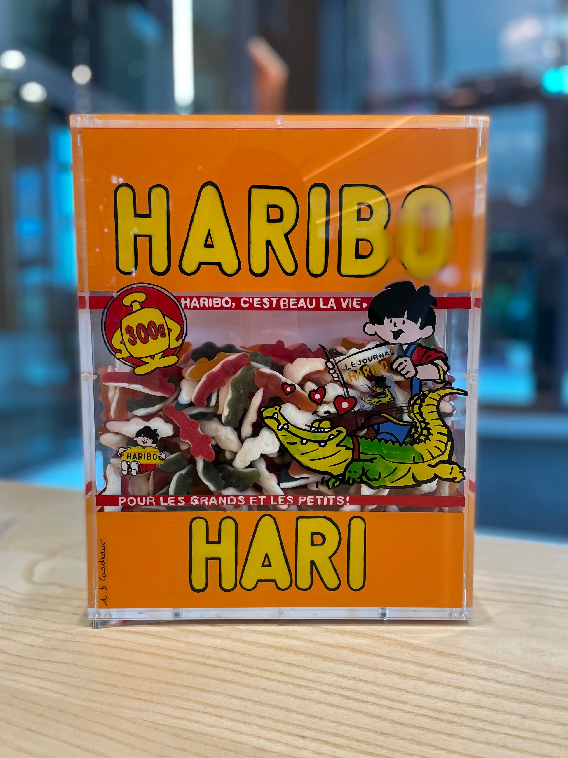 Information: Annick C a French artist, born and working in Paris, introduces in her works of art the most famous products of our consumer life. She has convinced the owners of the most famous brands and logos in the world of her original and creative approach to such brands. A difficult task knowing the legal means of such owners to protect their brands. Annick b. Cuadrado enjoys interpreting and diverting, with elegance, vigor and humor, the well-known candies, soft drinks, washing powders.