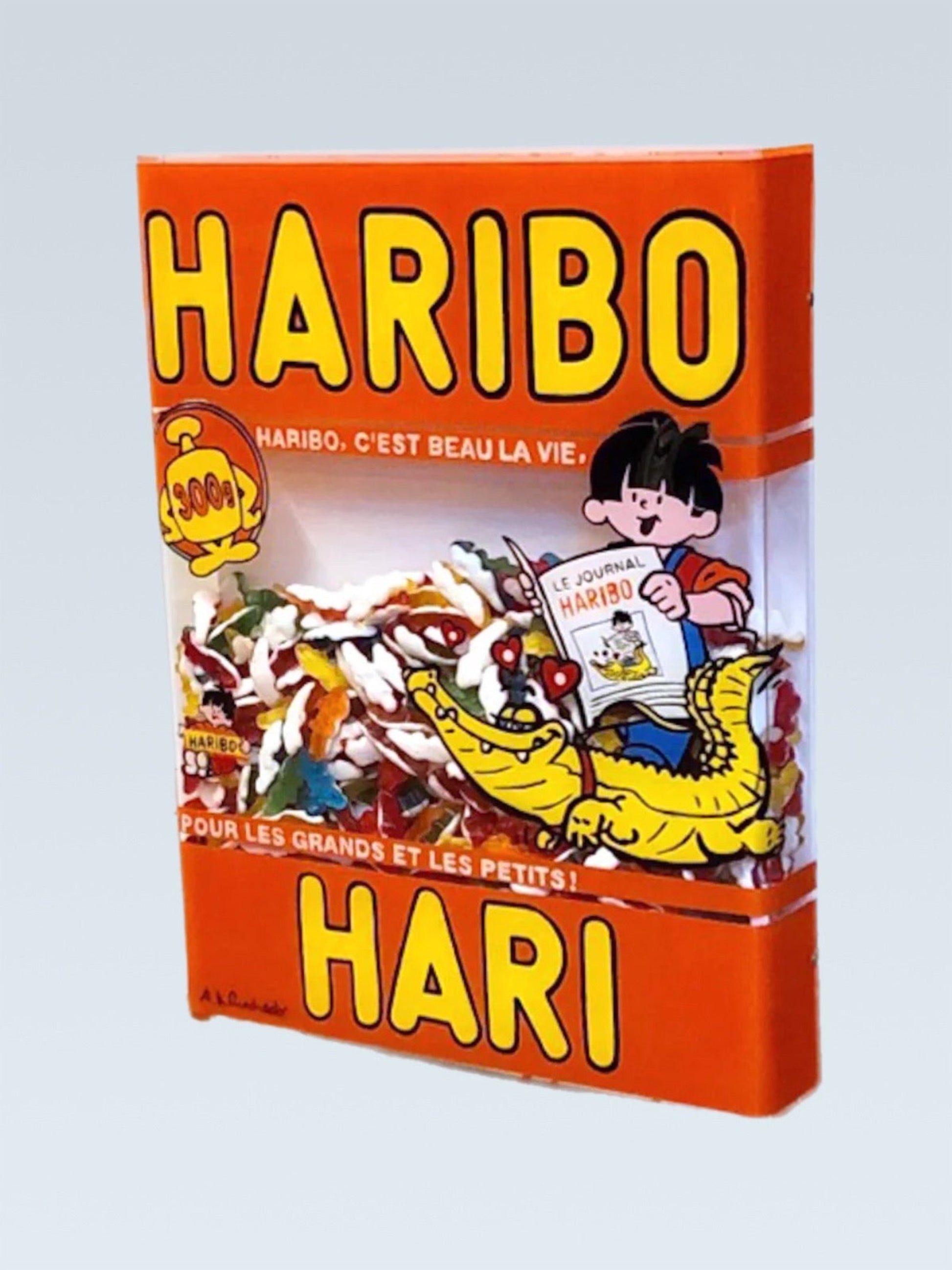 The image and memory of these products and brands is an actual echo to our child’s remembrances and an appeal to our taste buds : Coca-Cola, Hollywood chewing-gum, Tagada strawberries, Car en Sac, Marshmallows, Haribo Dragibus, Carambar, Malabar, Krema candies, Danone etc…