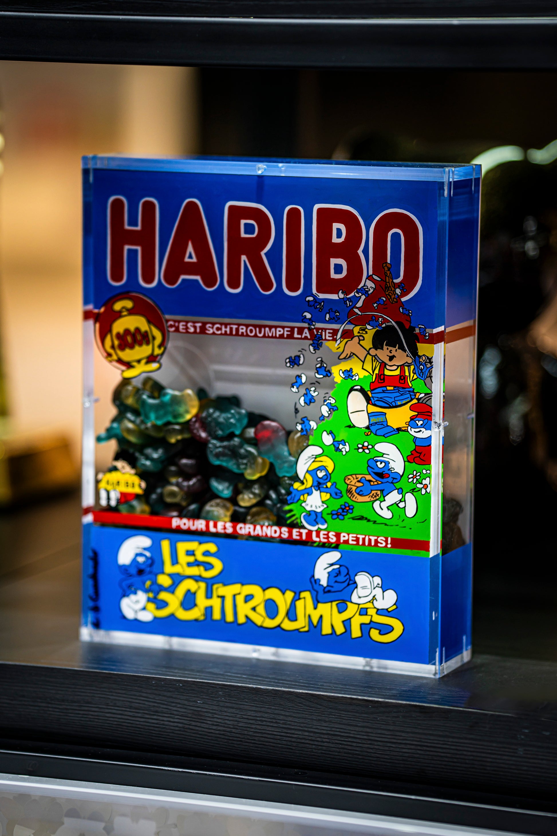 The image and memory of these products and brands is an actual echo to our child’s remembrances and an appeal to our taste buds : Coca-Cola, Hollywood chewing-gum, Tagada strawberries, Car en Sac, Marshmallows, Haribo Dragibus, Carambar, Malabar, Krema candies, Danone etc…