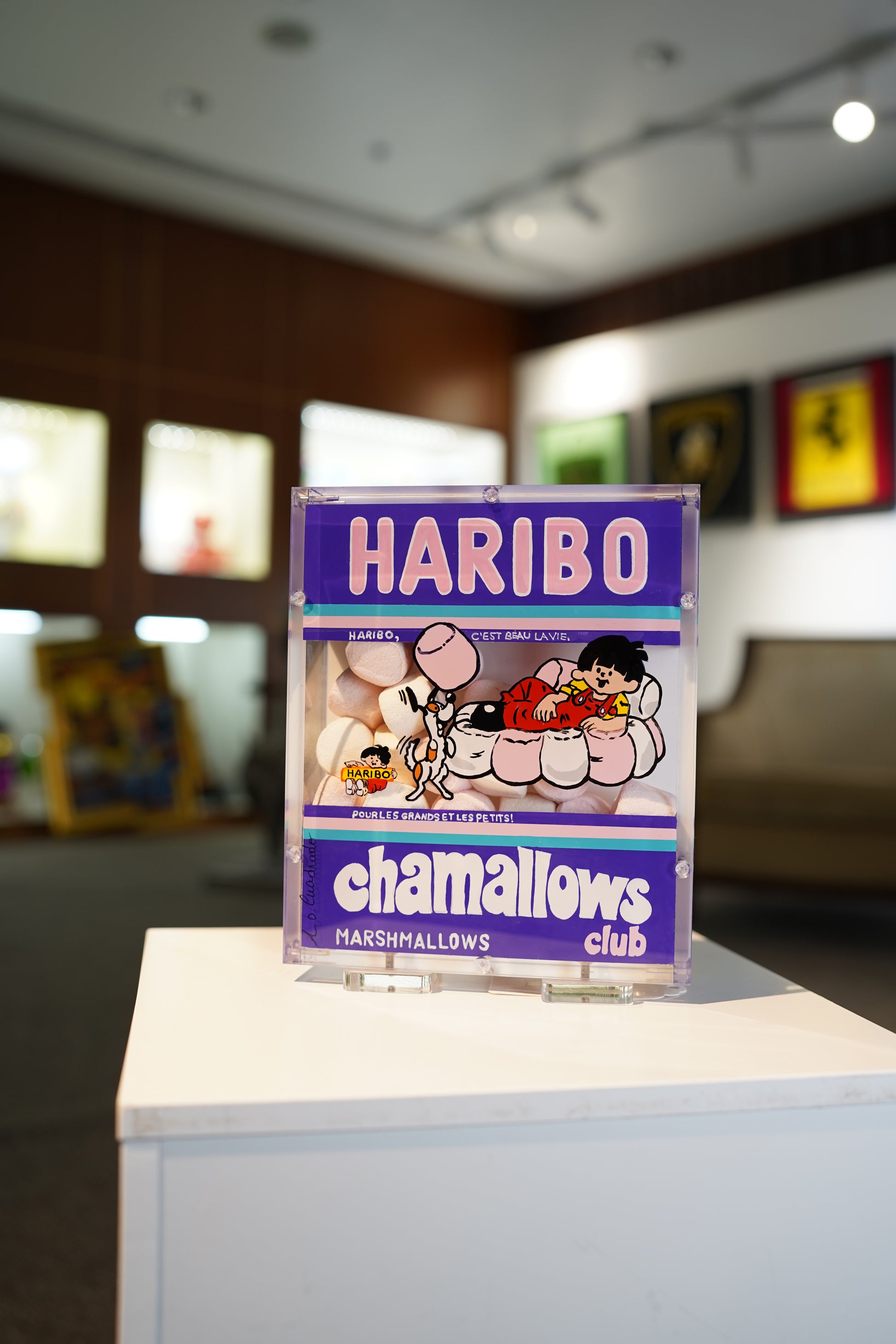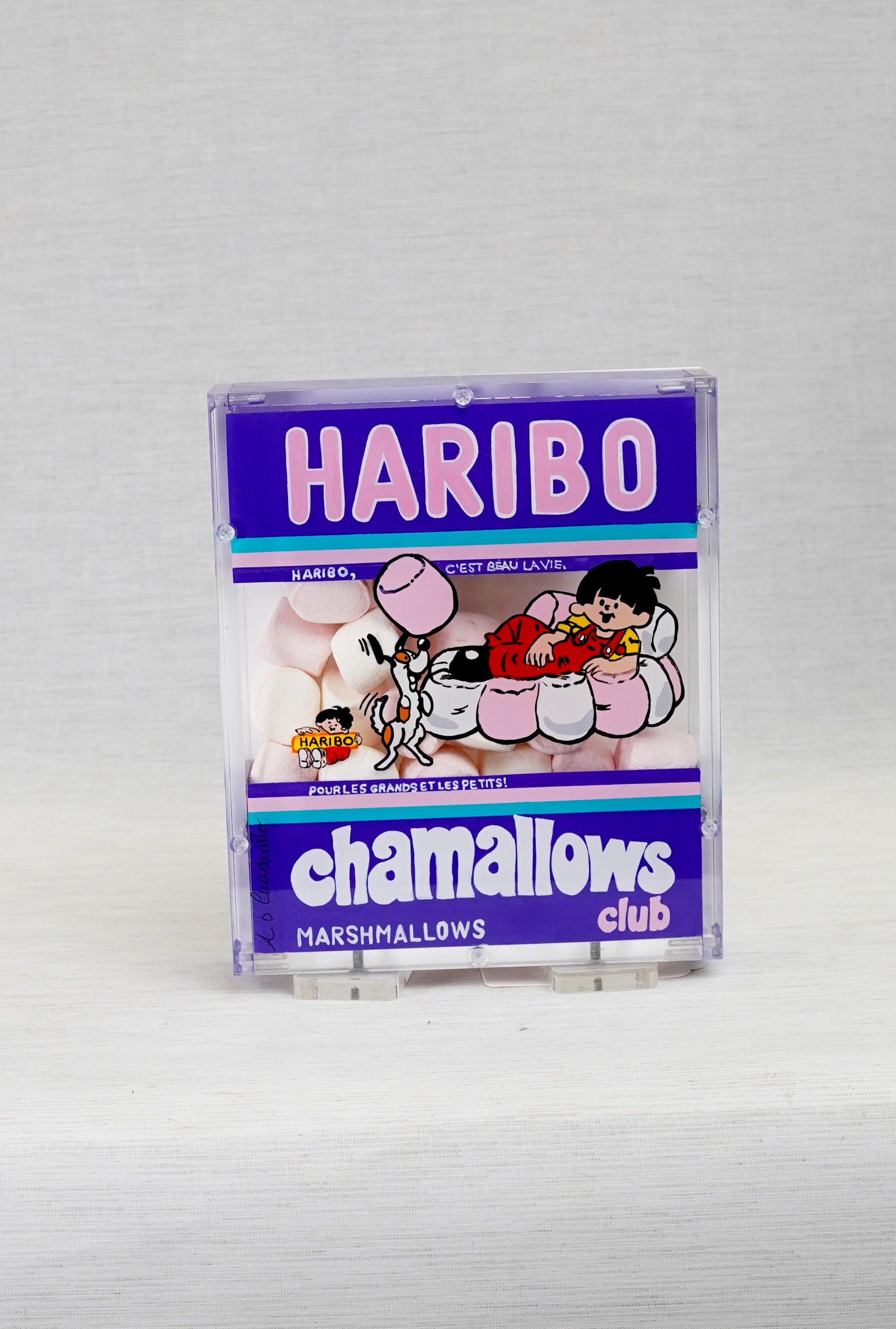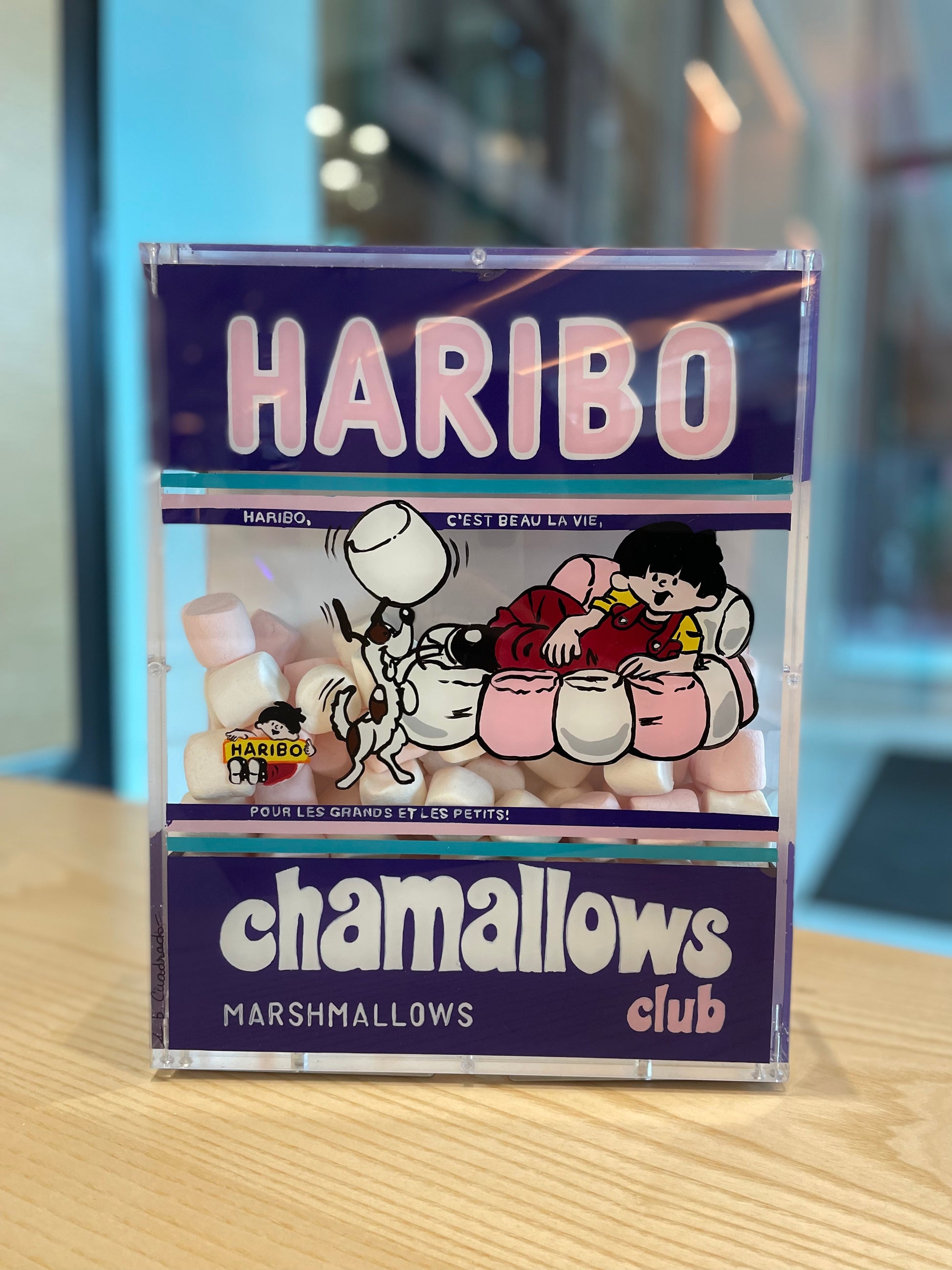 The image and memory of these products and brands is an actual echo to our child’s remembrances and an appeal to our taste buds : Coca-Cola, Hollywood chewing-gum, Tagada strawberries, Car en Sac, Marshmallows, Haribo Dragibus, Carambar, Malabar, Krema candies, Danone etc…