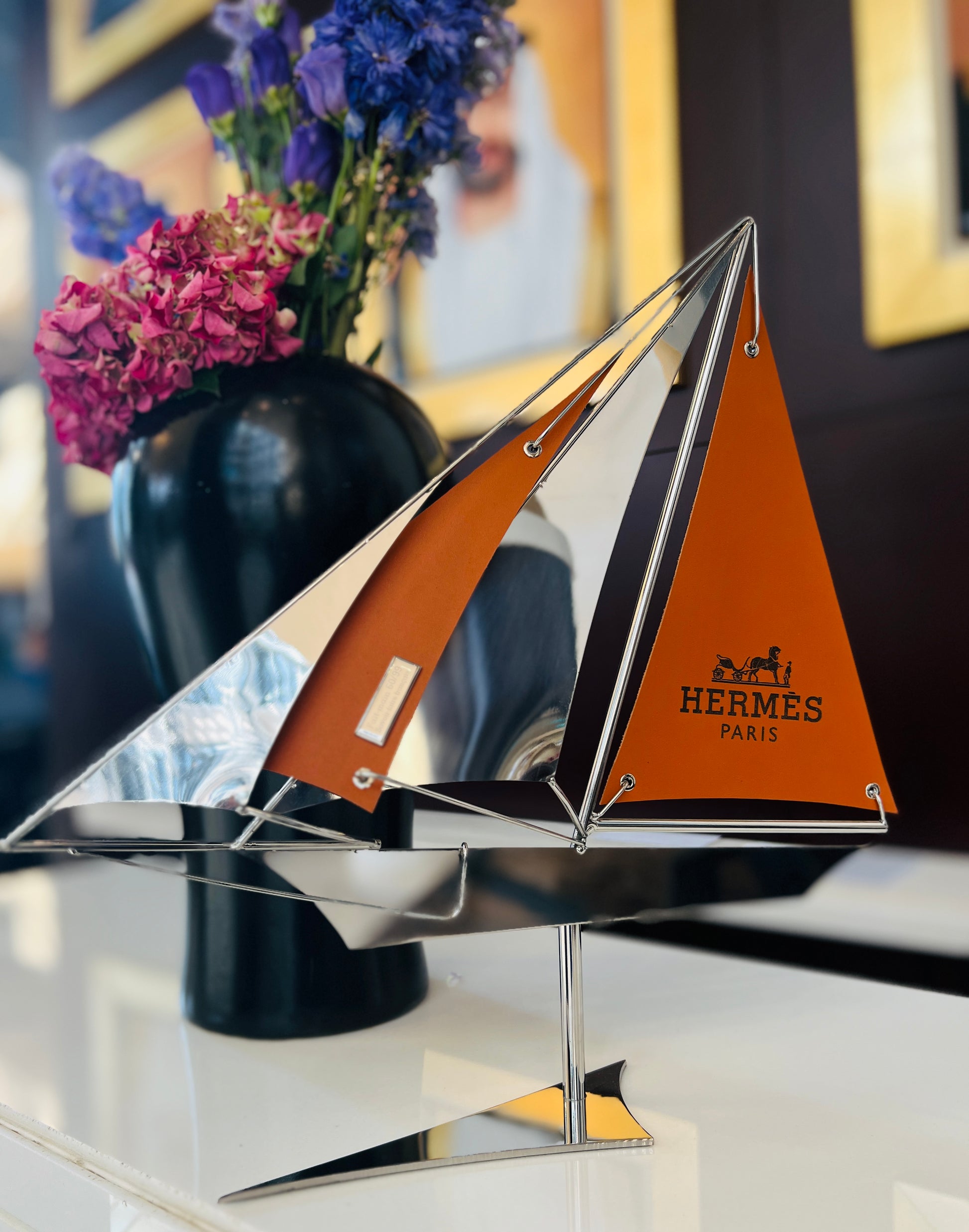 About the artwork: Handcrafted with meticulous precision, this sailing boat by Arcanis reflects the harmony between human ingenuity and artistic emotion. Each element — from the polished metal to the supple leather — is shaped and assembled by hand, embodying a dialogue between tradition and modern craftsmanship.