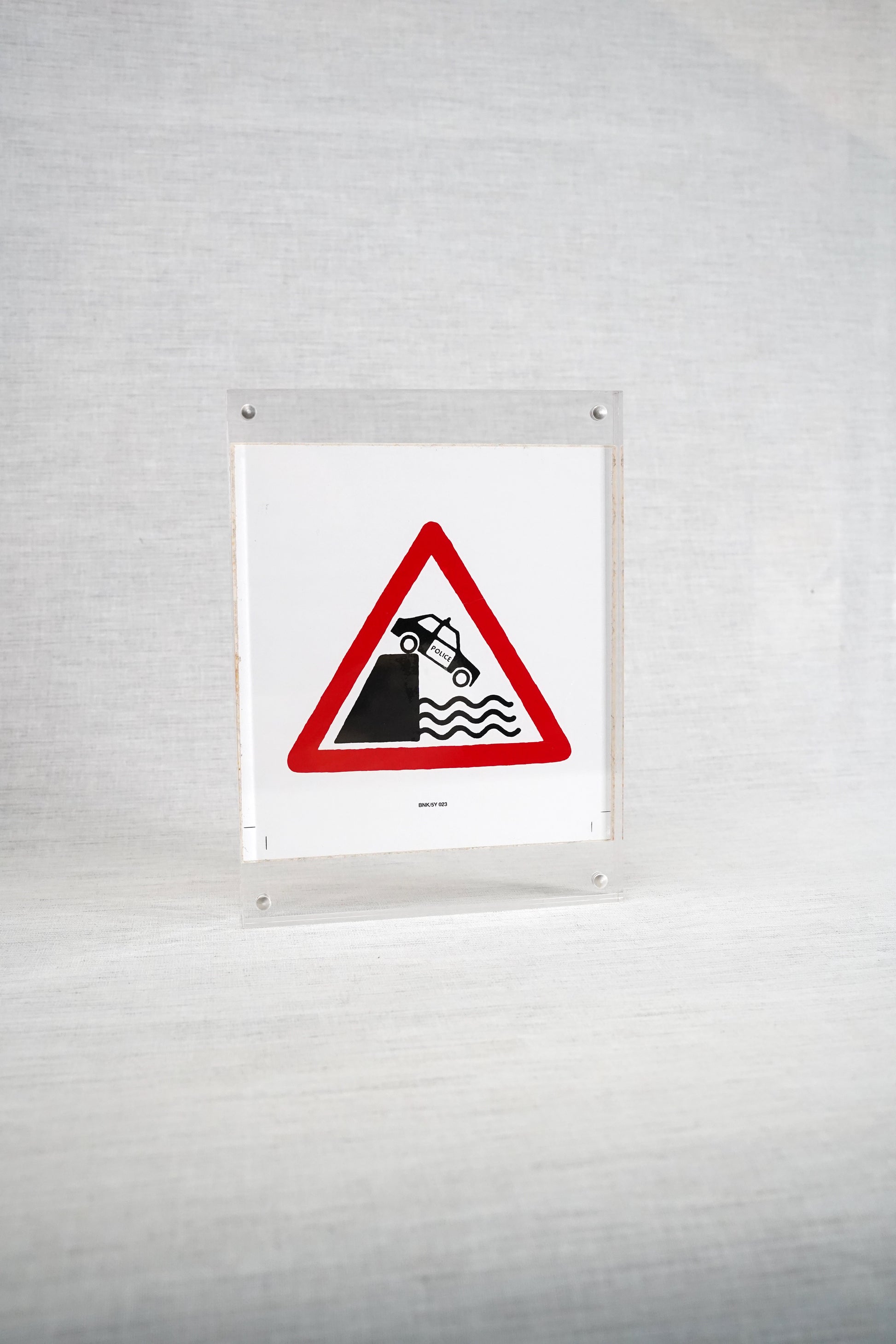 Information: Banksy made these with numbers on the bottom on most of his stickers to resemble the official highway codes in England so when he stuck them on the streets they may stay up a bit longer.