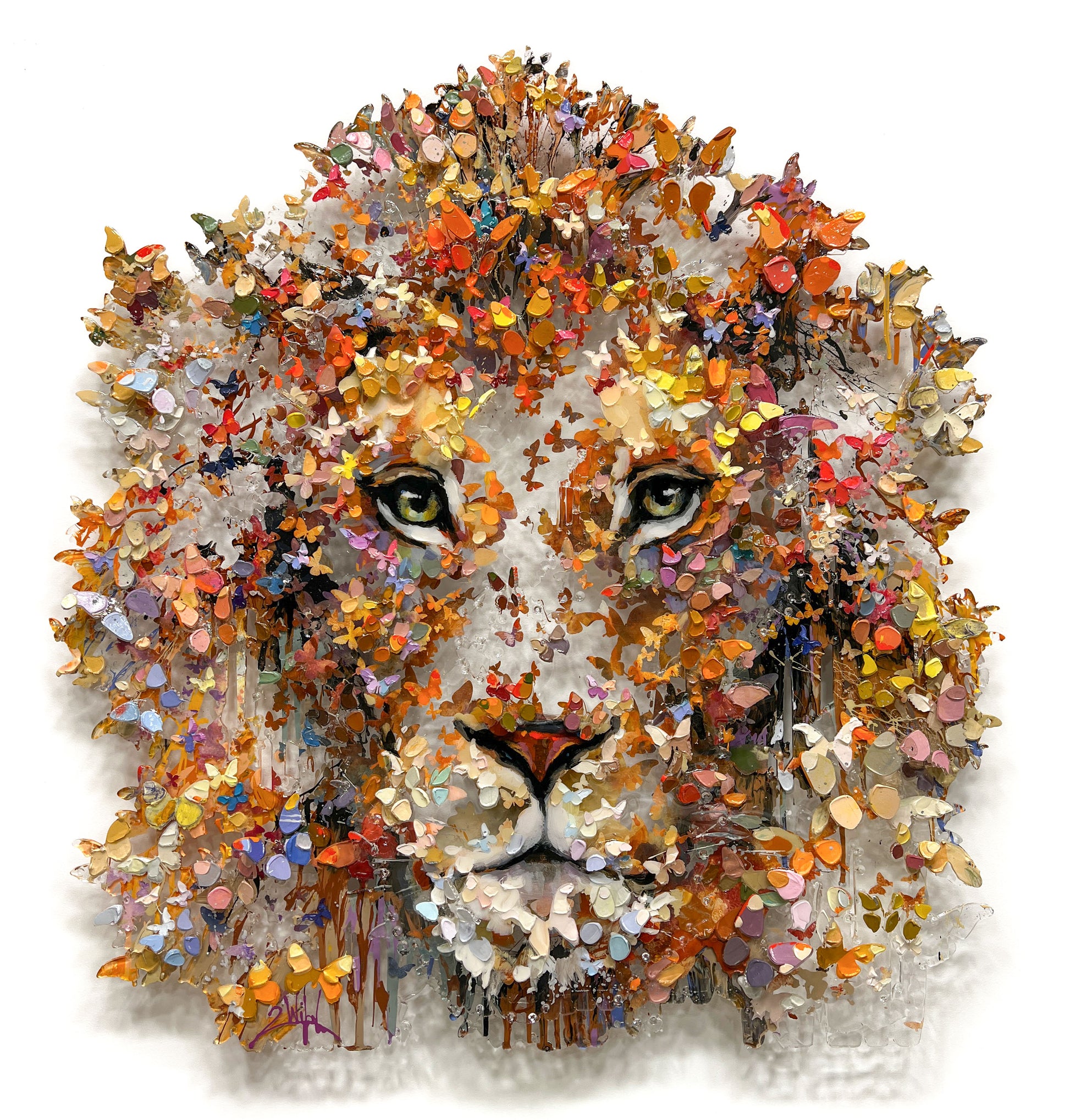 Technique: Hand-bent plexiglass butterflies, acrylic, and resin on layered laser-cut plexiglass.