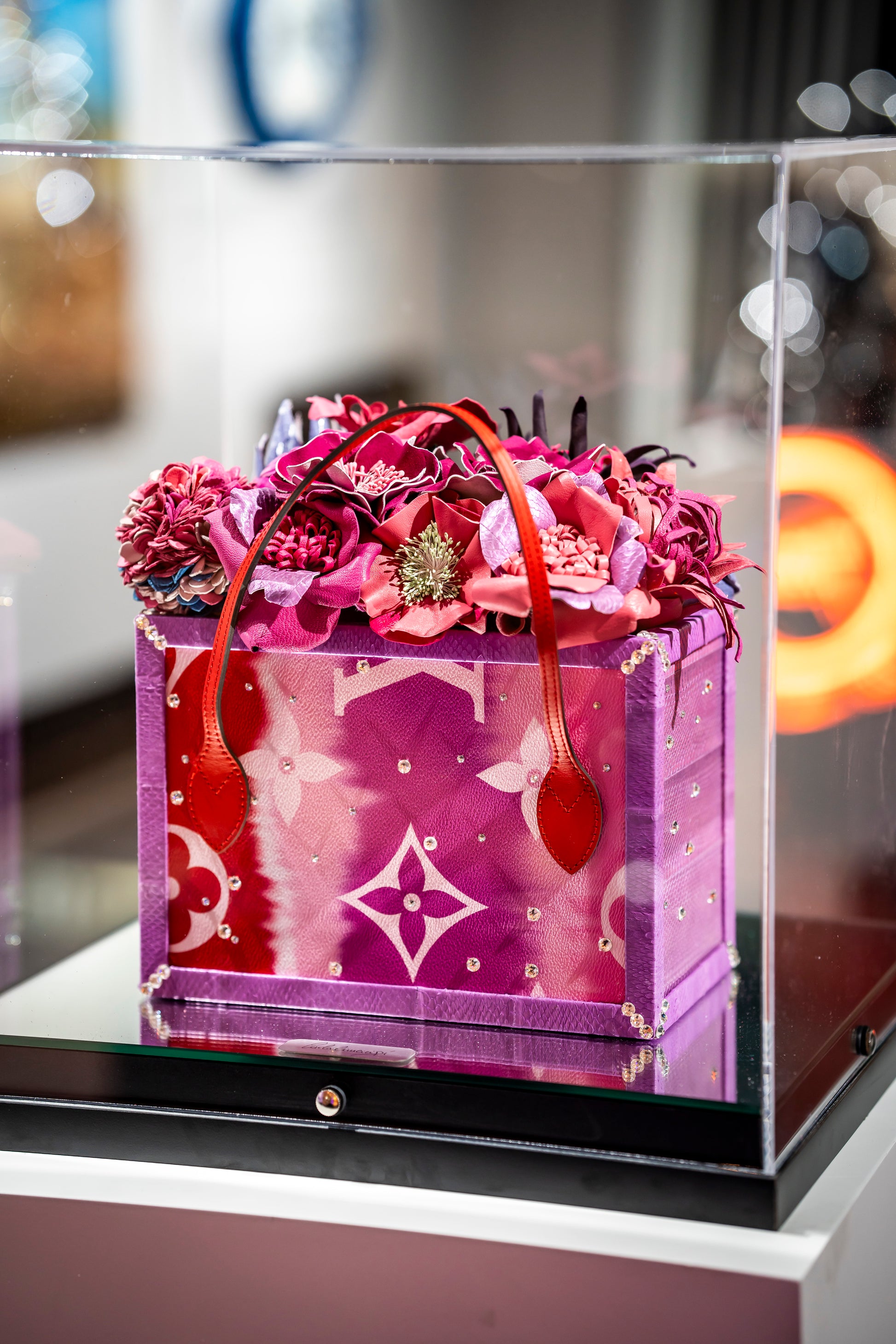Carla’s creations freeze time, making the ephemeral eternal. Each handbag-flower hybrid is housed in a unique box, transforming it into a story—unrepeatable, precious, and timeless.