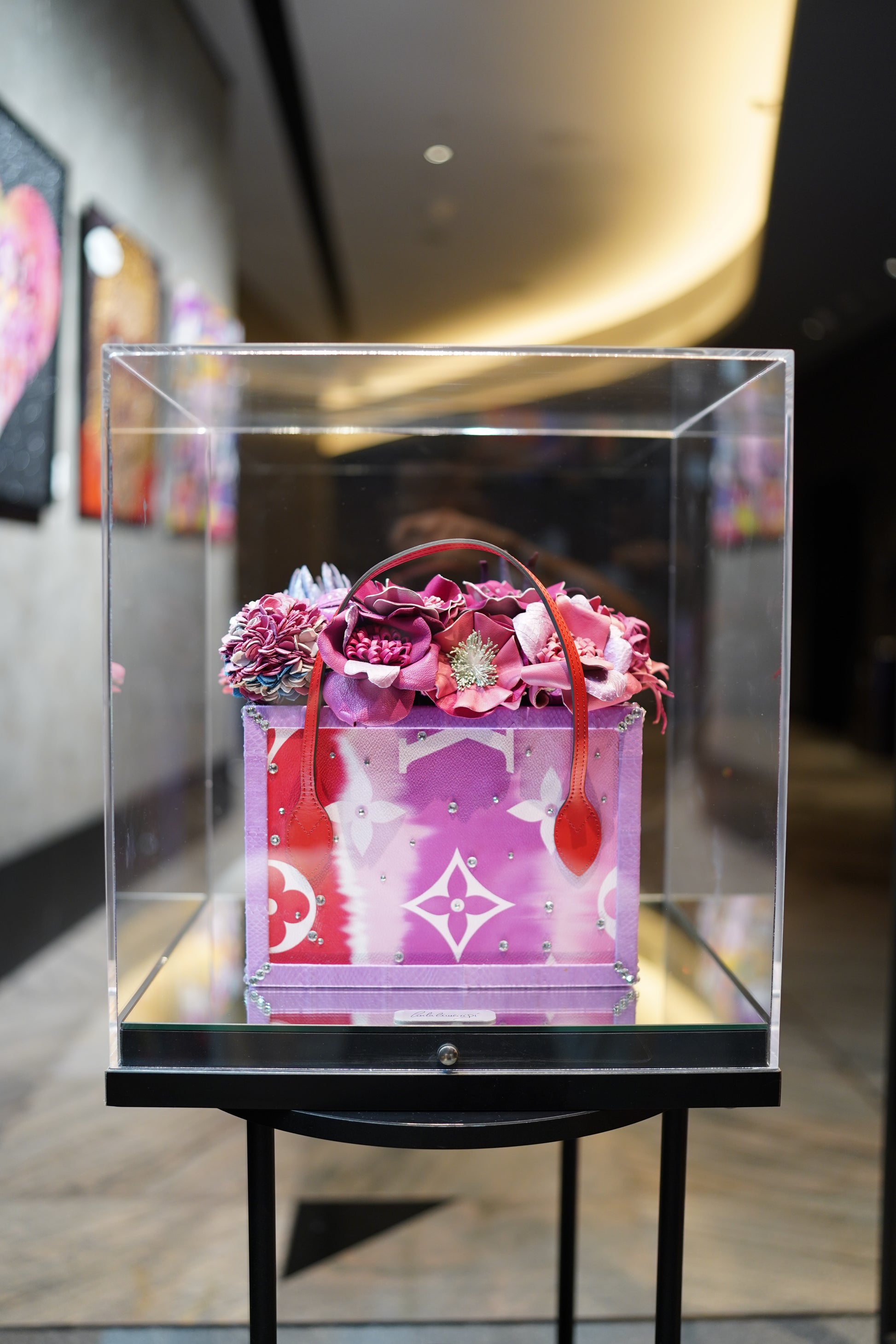 Her work unites her two lifelong loves: handbags and flowers, nature’s most delicate yet fleeting gift. A handbag collector since childhood, Carla was captivated by their forms, details, and symbolism, developing a romantic pop style influenced by the early 2000s. Flowers, ever-present in her family’s life, became her way of capturing beauty and emotion.