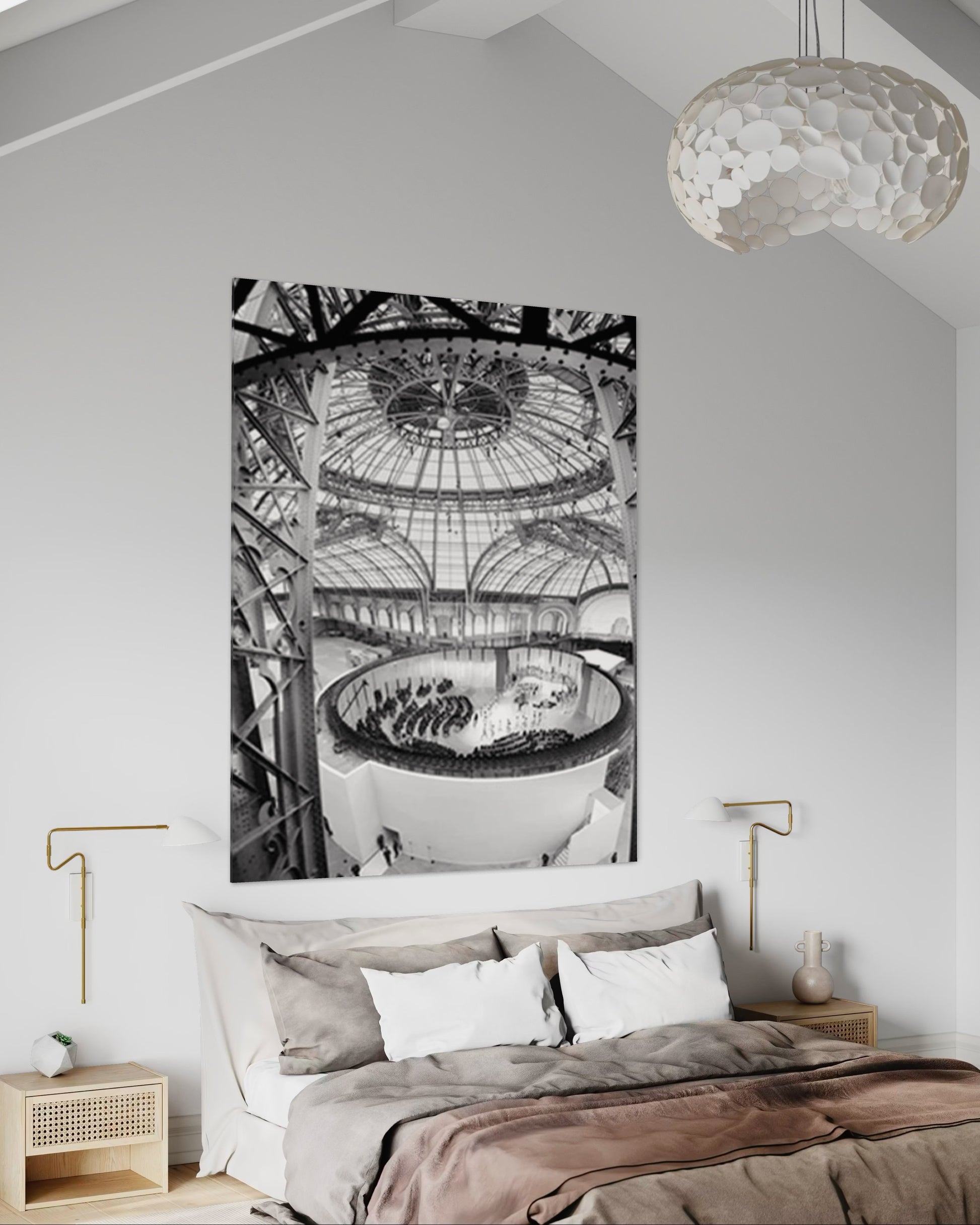 Information about the artwork: With a staircase at each end, and an orchestra in the middle featuring guest starring musician Sebastien Tellier in a pastel suit, Karl Lagerfeld unveils a ‘Cambon Club’ setting. Simon was on the roof and achieved an unique view of the focal point - a gigantic, magical, old-fashioned zoetrope.