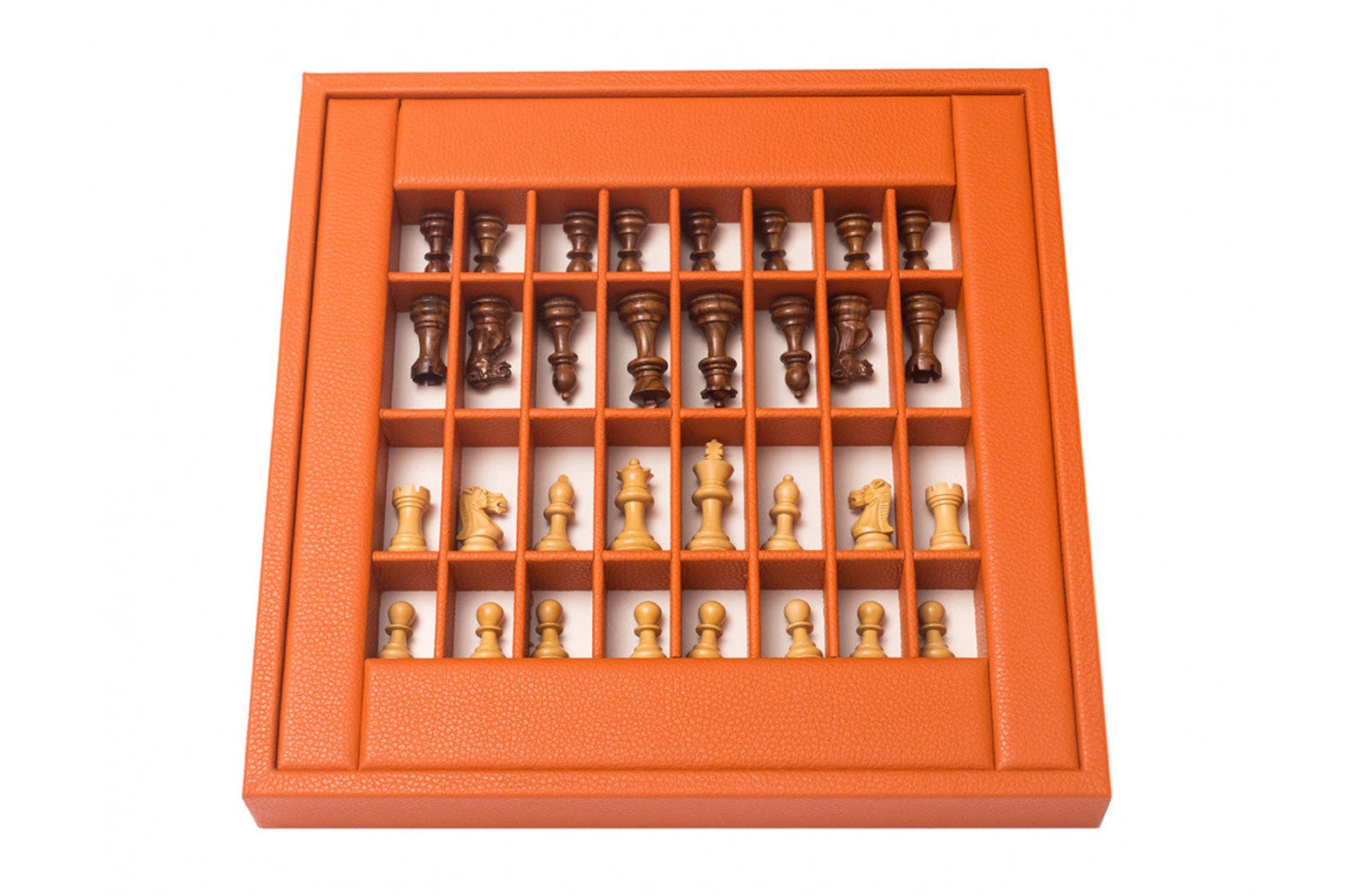 HECTOR SAXE Chess box - ORANGE leather Buffalo