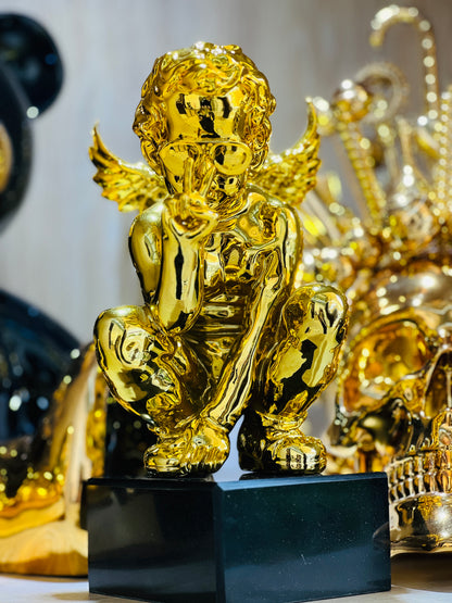 Information about the artwork: Vivid punk stylings and pop-art icons mixed with luxurious opulence. Naughty Angels are quirky and bold, fun and daring. From Karl Lagerfeld riding a skate board to Frida Kahlo covered in parrots. All Angles are hand painted and completely unique. Made-to-order and fully customisable. It takes 6 weeks to create an Angle in their West London workshop.