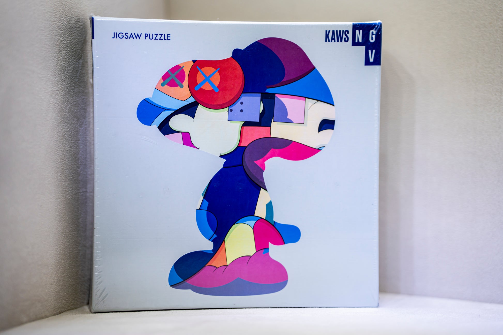 Information: KAWS is known for releasing some of the most unique collectibles out there, especially when he ventures outside of his typical vinyl figures. The artist has released dozens of items like keychains, pins, plates, mugs, towels, greeting cards, and much more. One of his most popular collectibles is this No One's Home Puzzle, which initially released at the National Gallery of Victoria in Melbourne, Australia on September, 19th, 2019. The puzzle then saw an online release on the NGV web store later that year. Coming in at an affordable retail price of just $31 USD, 4 years after his release, this puzzle makes an awesome addition to any KAWS collection.
