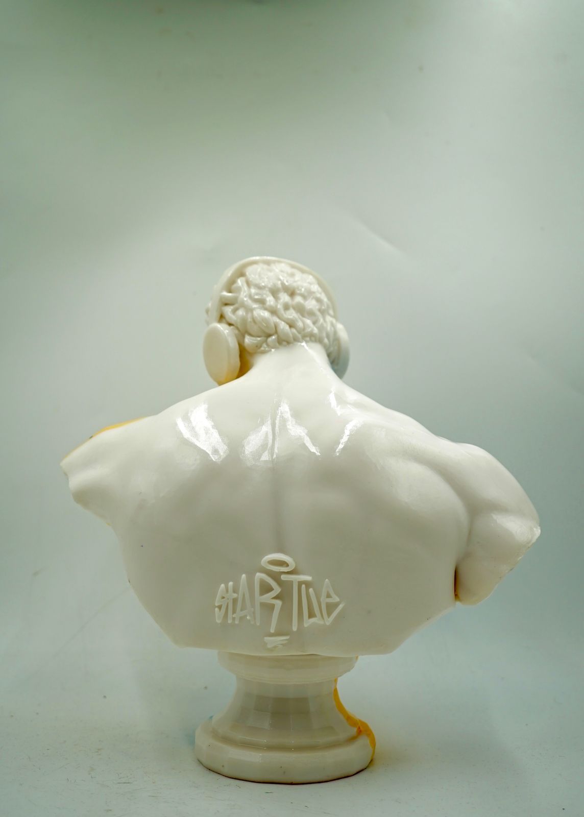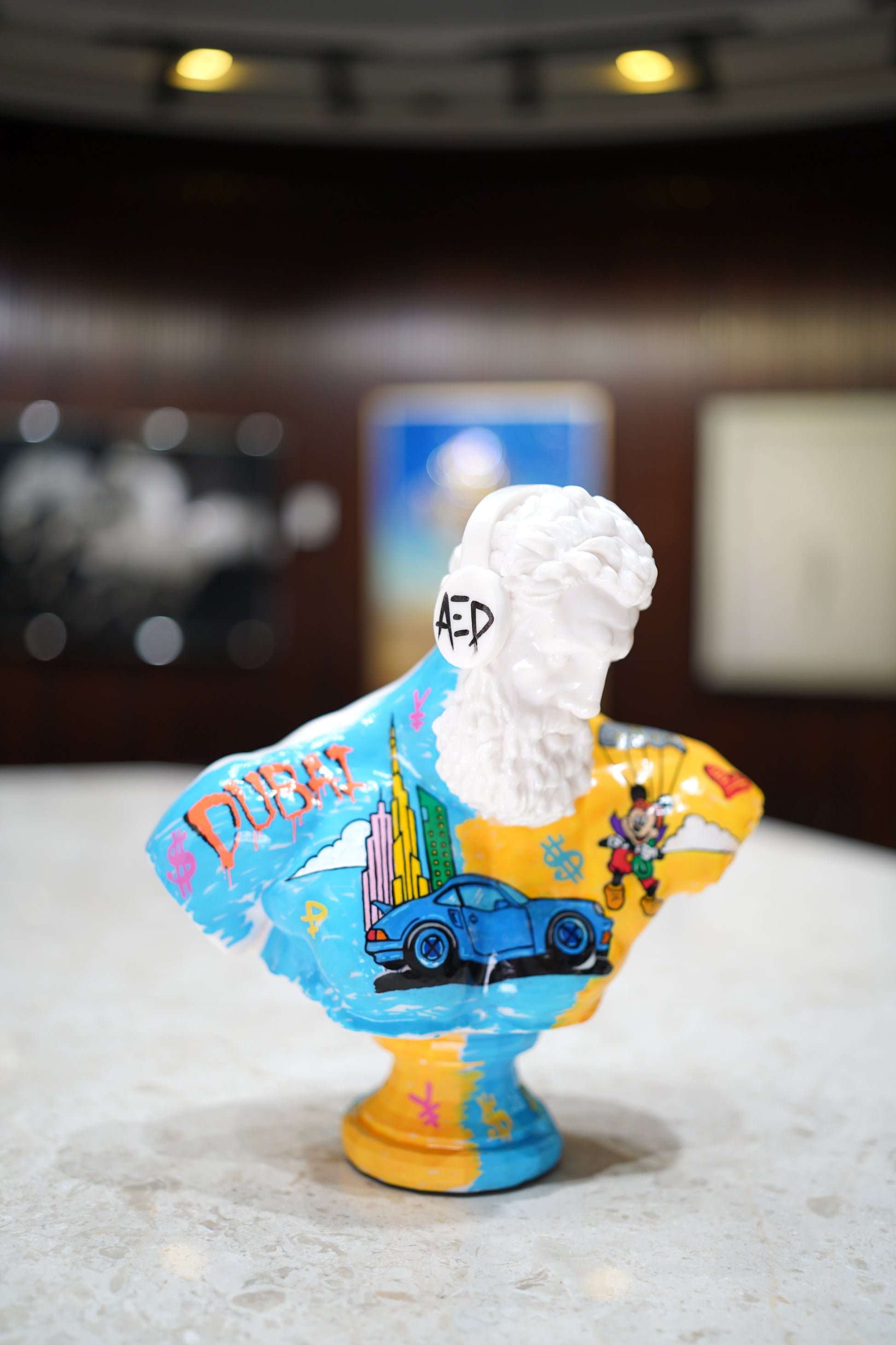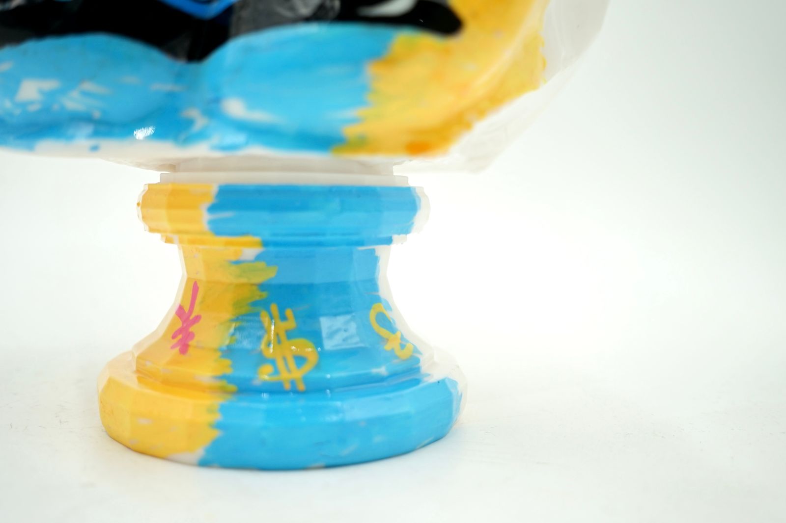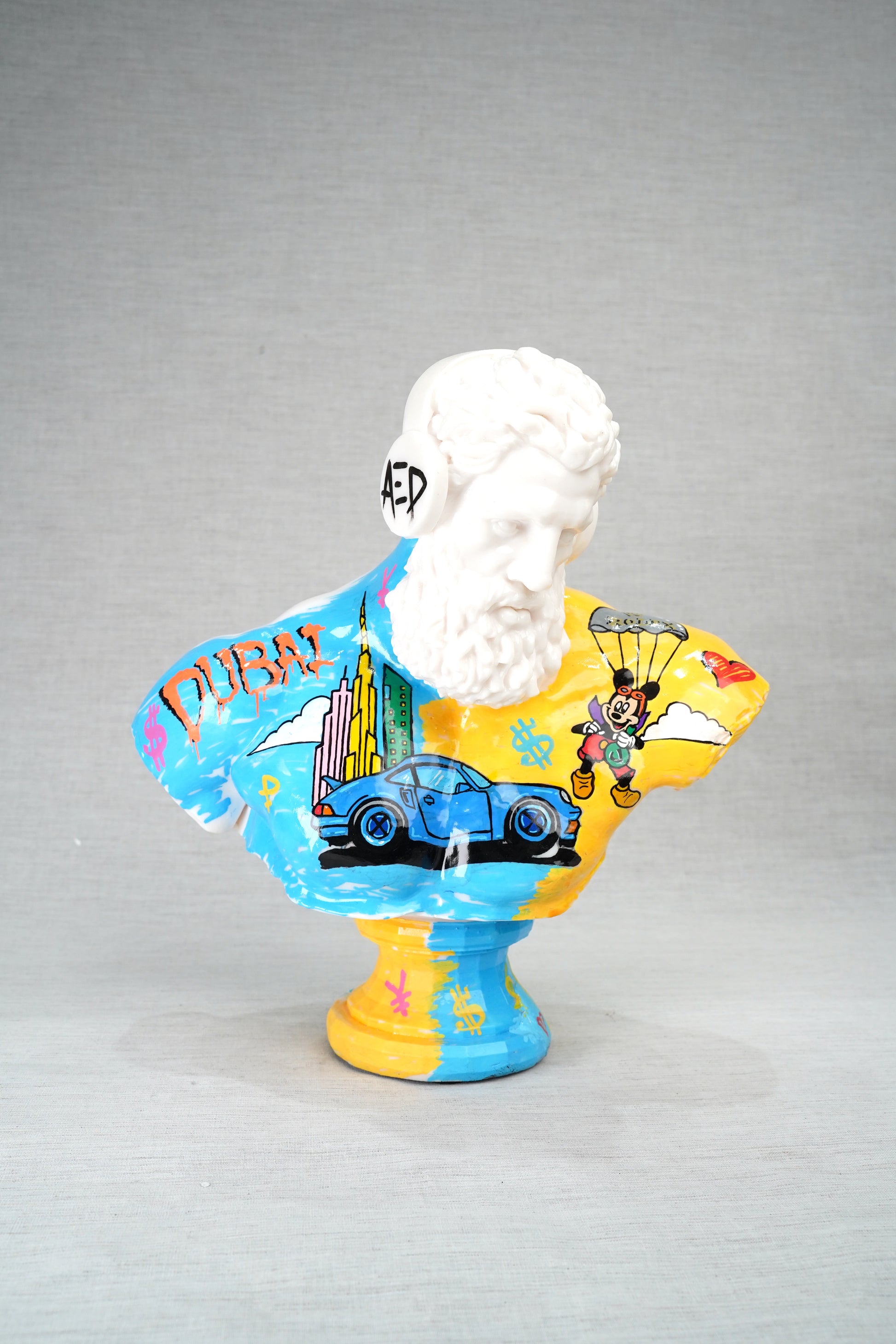 Information: Michail, born in Greece in 1992, has developed different techniques over the years. He works mainly with alabaster sculptures, sprays and markers, creating colorful works of art full of contrasts - not only visually, but also in their meaning. Whether painting or sculpture, Michail takes these great examples of Greek beauty norms and adds a twist to our modern culture. With spray paint and markers, he covers ancient deities with symbols, signs and labels that reflect today's cultural "obsessions" - what 21st century culture thinks and dreams about. His mode of expression depicts the transformation of our world and, transforming the statues of ancient Greece into a new art, clearly shows the lack of order in the new world. Michail lives and creates on the island of Mykonos.