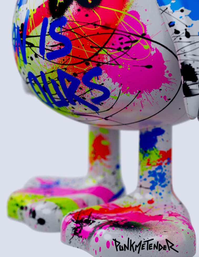 The “PunkMeTender” duck is a forever youthful rebel — a seeker of freedom and independence, navigating a world free from boundaries and stereotypes. With all its strengths and weaknesses laid bare, it presents itself raw and undone, possessing the heart of a wild child who never ceases to dream. This collaboration goes beyond mere toys. It represents the convergence of two robust life philosophies, brought to life in a tangible collectible art piece. The “TUD x PunkMeTender” is available only in size L, with a limited quantity of 350 ducks. Each toy is distinguished by a unique serial number located on the back of its head. Sized at L (90 cm), it transforms into a complete collectible art object, seamlessly fitting into any space and interior.
