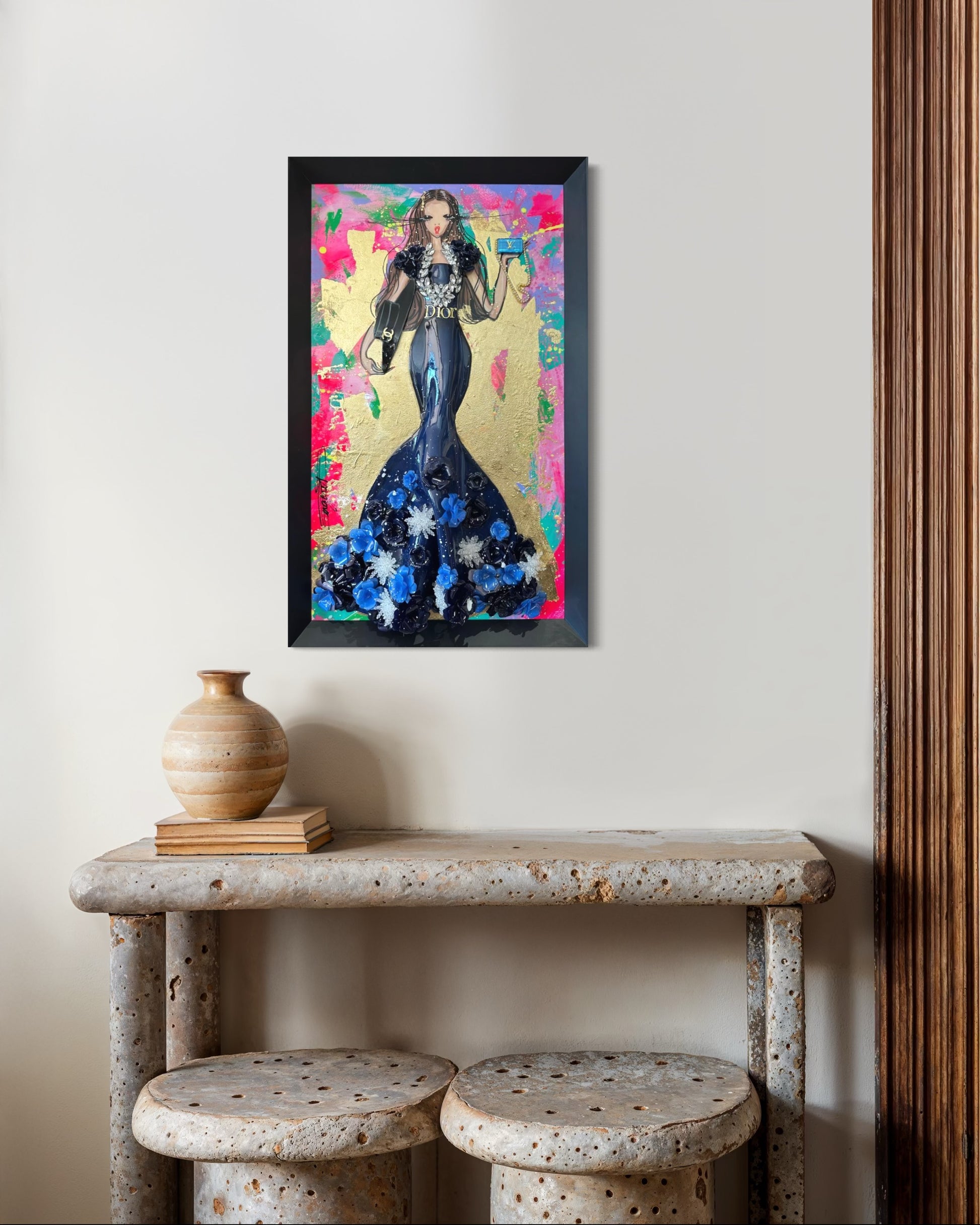 Information : Rachel, stylist by trade, created her heroine more than 10 years ago. We call it ''La Parisienne'': The wavy hair, the dominance of gold by Gustav Klimt, the audacity of Toulouse Lautrec and the modernity of Edmond Kiraz have greatly influenced Rachel since her early childhood. Thanks to her creativity, Rachel thus composes three-dimensional works with a predominance for painting and recycling brand bags, perfume bottles from major brands such as Dior, Chanel, Hermès, Louis Vuitton, Gucci, YSL... of gold, pearls, flowers will come together under his brushstrokes to give unique works. Rachel is a popular French artist that the fashion world adores. Her works are present in the collections of major designers and international collectors.