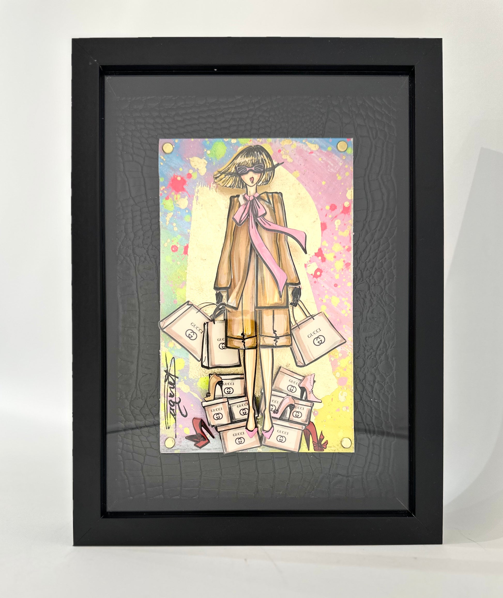 Information : Rachel, stylist by trade, created her heroine more than 10 years ago. We call it ''La Parisienne'': The wavy hair, the dominance of gold by Gustav Klimt, the audacity of Toulouse Lautrec and the modernity of Edmond Kiraz have greatly influenced Rachel since her early childhood. Thanks to her creativity, Rachel thus composes three-dimensional works with a predominance for painting and recycling brand bags, perfume bottles from major brands such as Dior, Chanel, Hermès, Louis Vuitton, Gucci, YSL... of gold, pearls, flowers will come together under his brushstrokes to give unique works. Rachel is a popular French artist that the fashion world adores. Her works are present in the collections of major designers and international collectors.