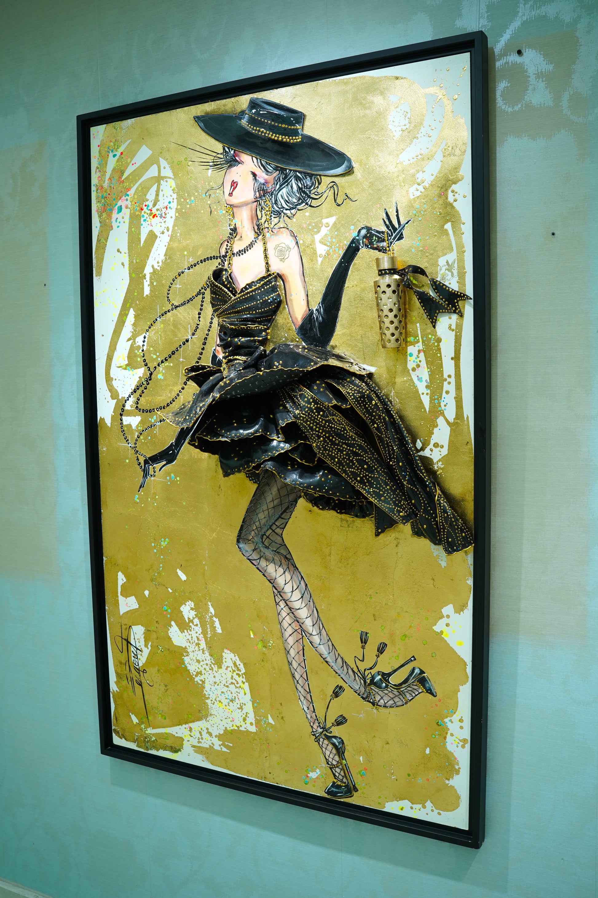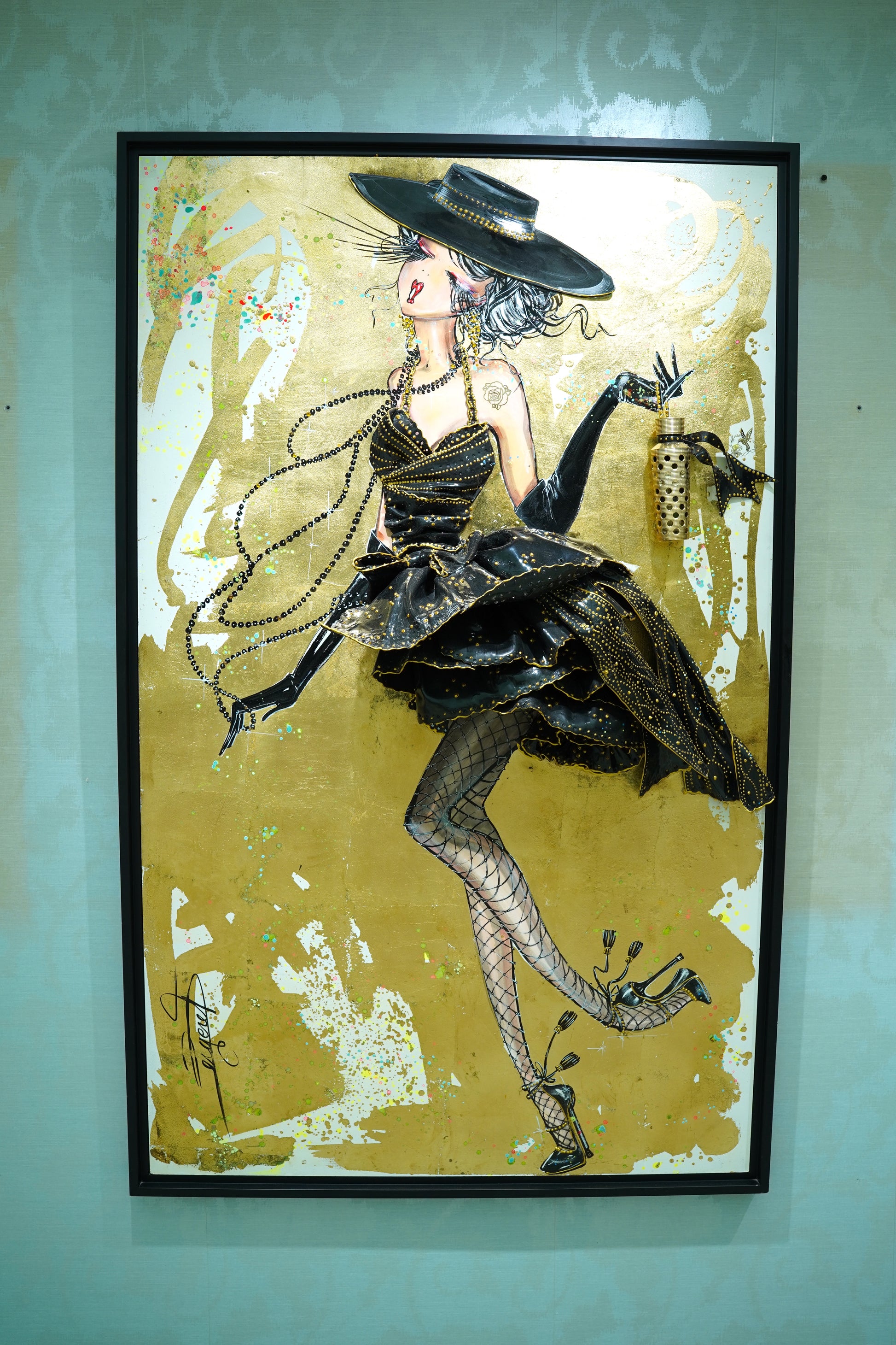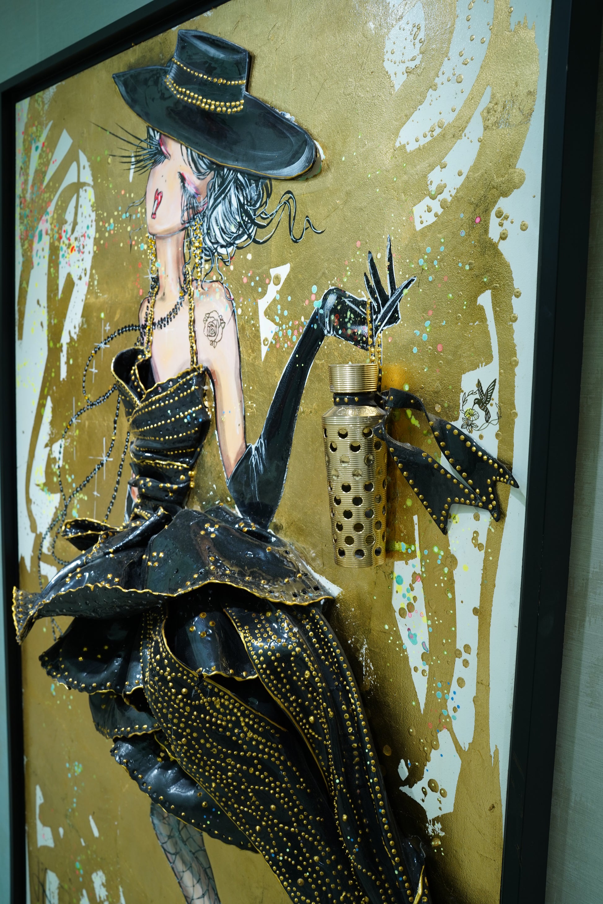 Information : Rachel, stylist by trade, created her heroine more than 10 years ago. We call it ''La Parisienne'': The wavy hair, the dominance of gold by Gustav Klimt, the audacity of Toulouse Lautrec and the modernity of Edmond Kiraz have greatly influenced Rachel since her early childhood. Thanks to her creativity, Rachel thus composes three-dimensional works with a predominance for painting and recycling brand bags, perfume bottles from major brands such as Dior, Chanel, Hermès, Louis Vuitton, Gucci, YSL... of gold, pearls, flowers will come together under his brushstrokes to give unique works. Rachel is a popular French artist that the fashion world adores. Her works are present in the collections of major designers and international collectors.