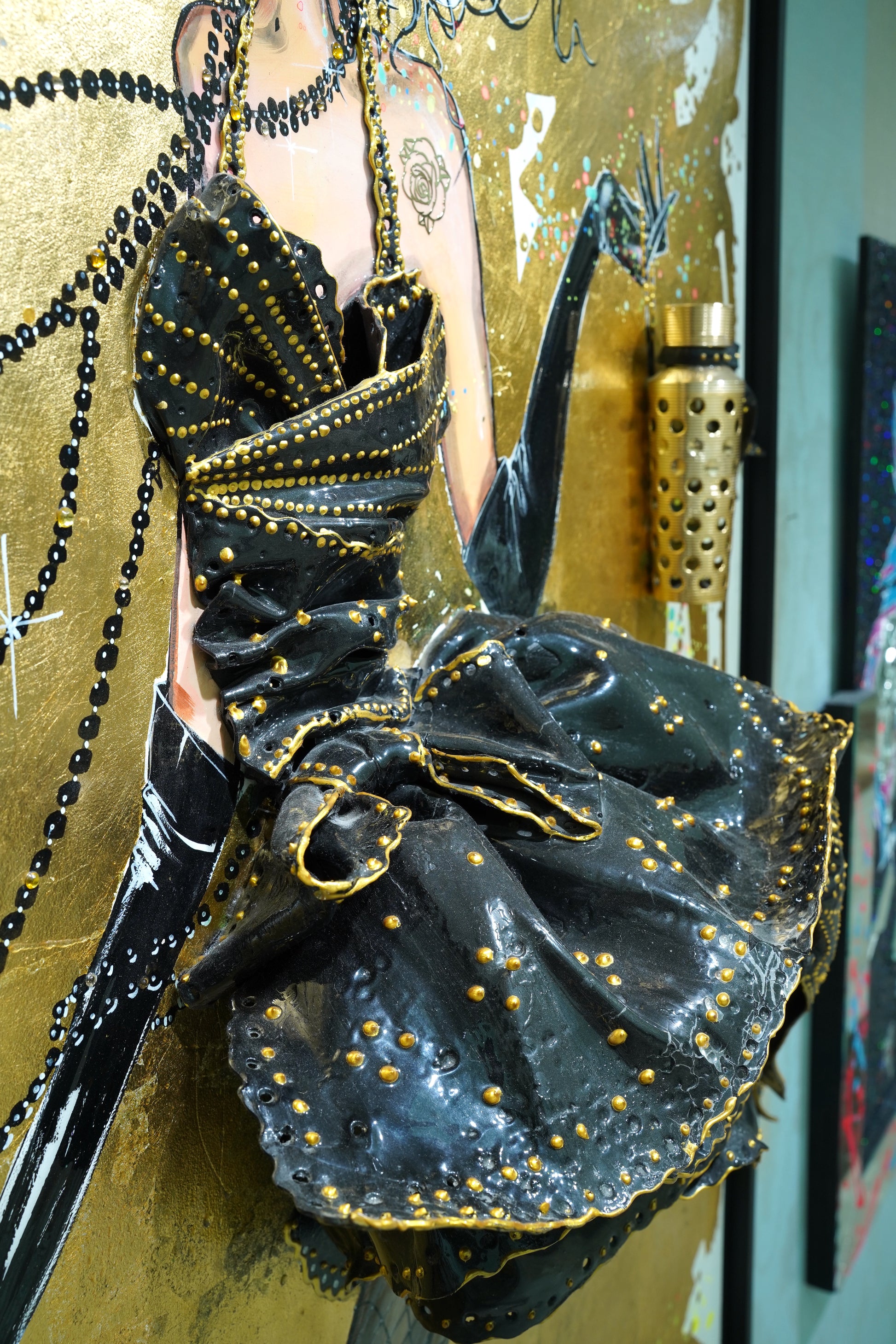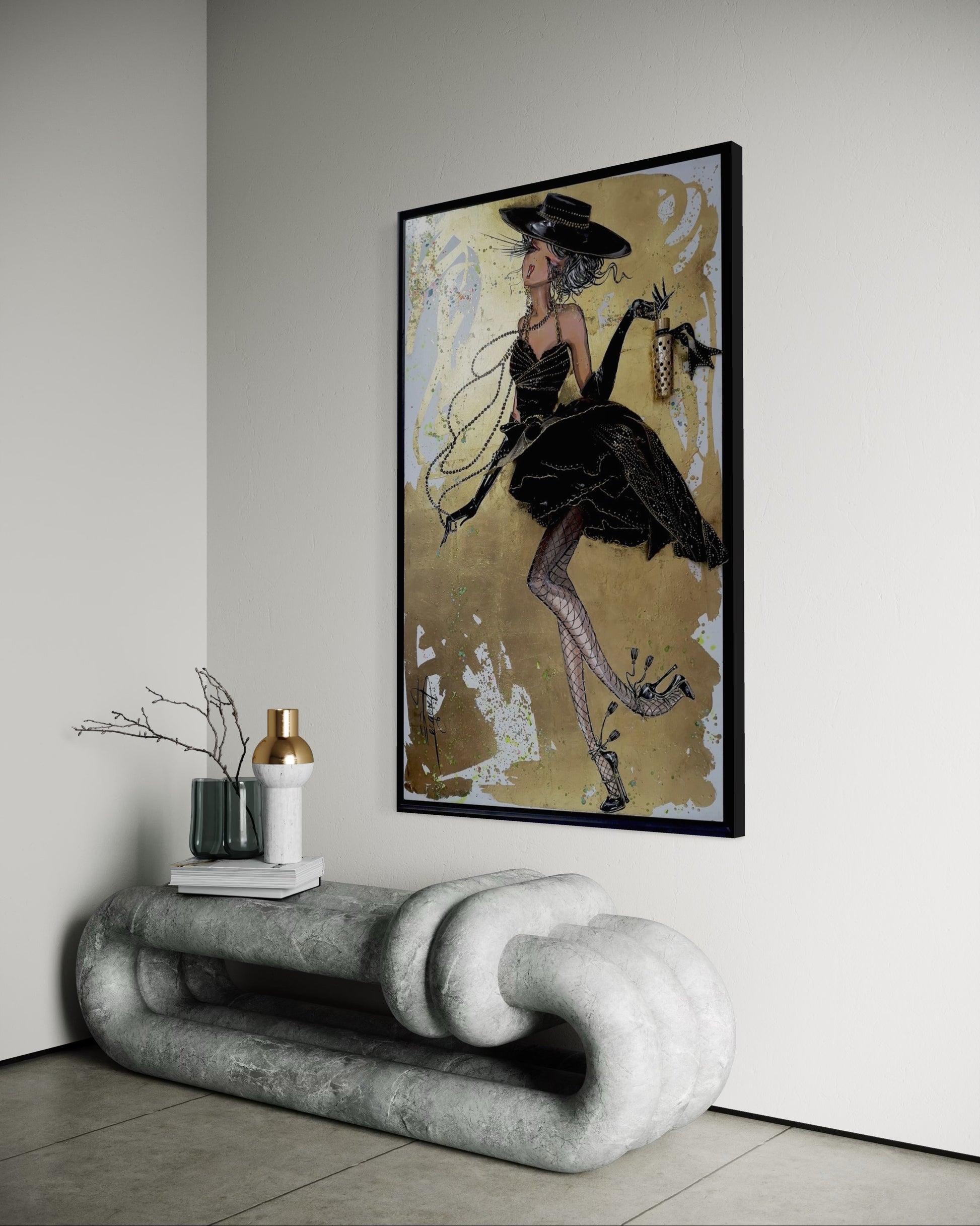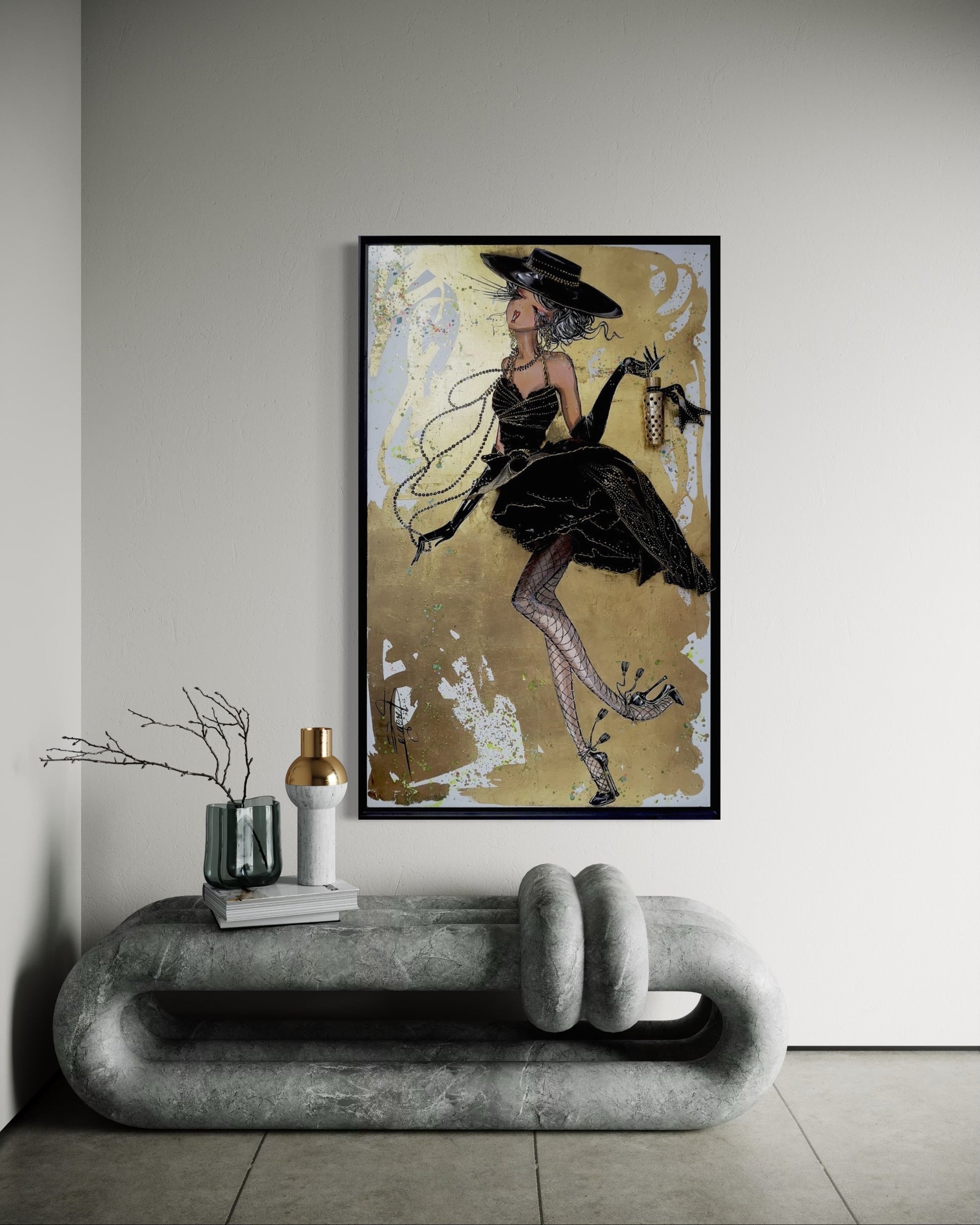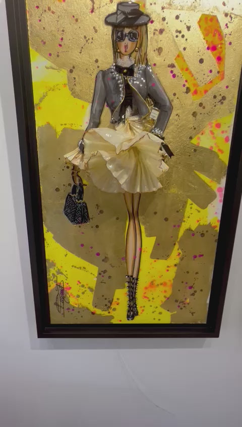 Information : Rachel, stylist by trade, created her heroine more than 10 years ago. We call it ''La Parisienne'': The wavy hair, the dominance of gold by Gustav Klimt, the audacity of Toulouse Lautrec and the modernity of Edmond Kiraz have greatly influenced Rachel since her early childhood. Thanks to her creativity, Rachel thus composes three-dimensional works with a predominance for painting and recycling brand bags, perfume bottles from major brands such as Dior, Chanel, Hermès, Louis Vuitton, Gucci, YSL... of gold, pearls, flowers will come together under his brushstrokes to give unique works. Rachel is a popular French artist that the fashion world adores. Her works are present in the collections of major designers and international collectors.