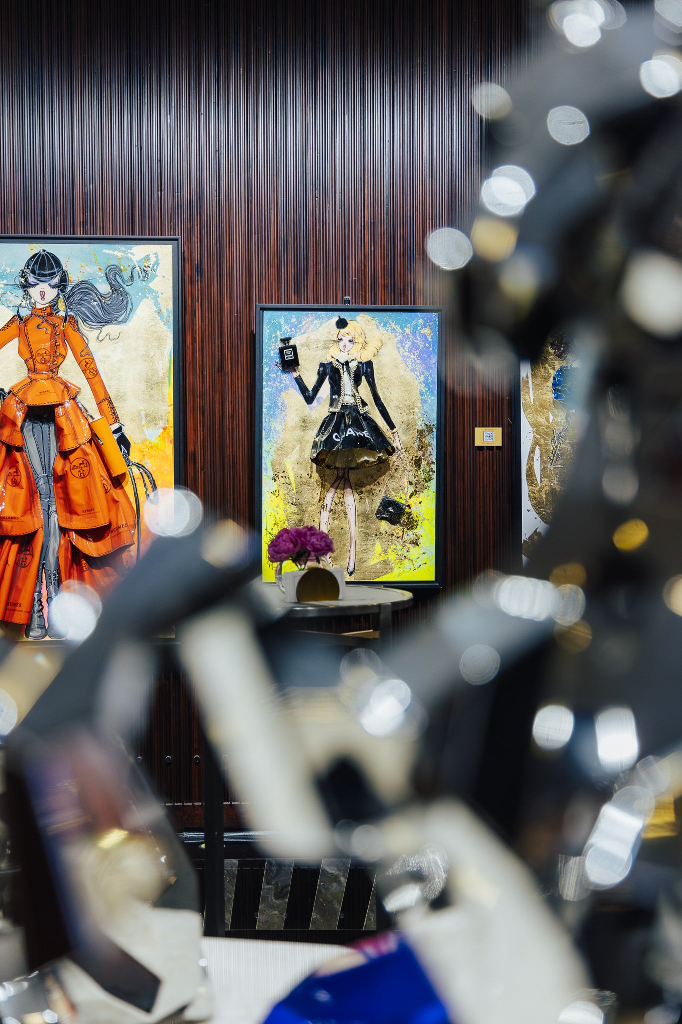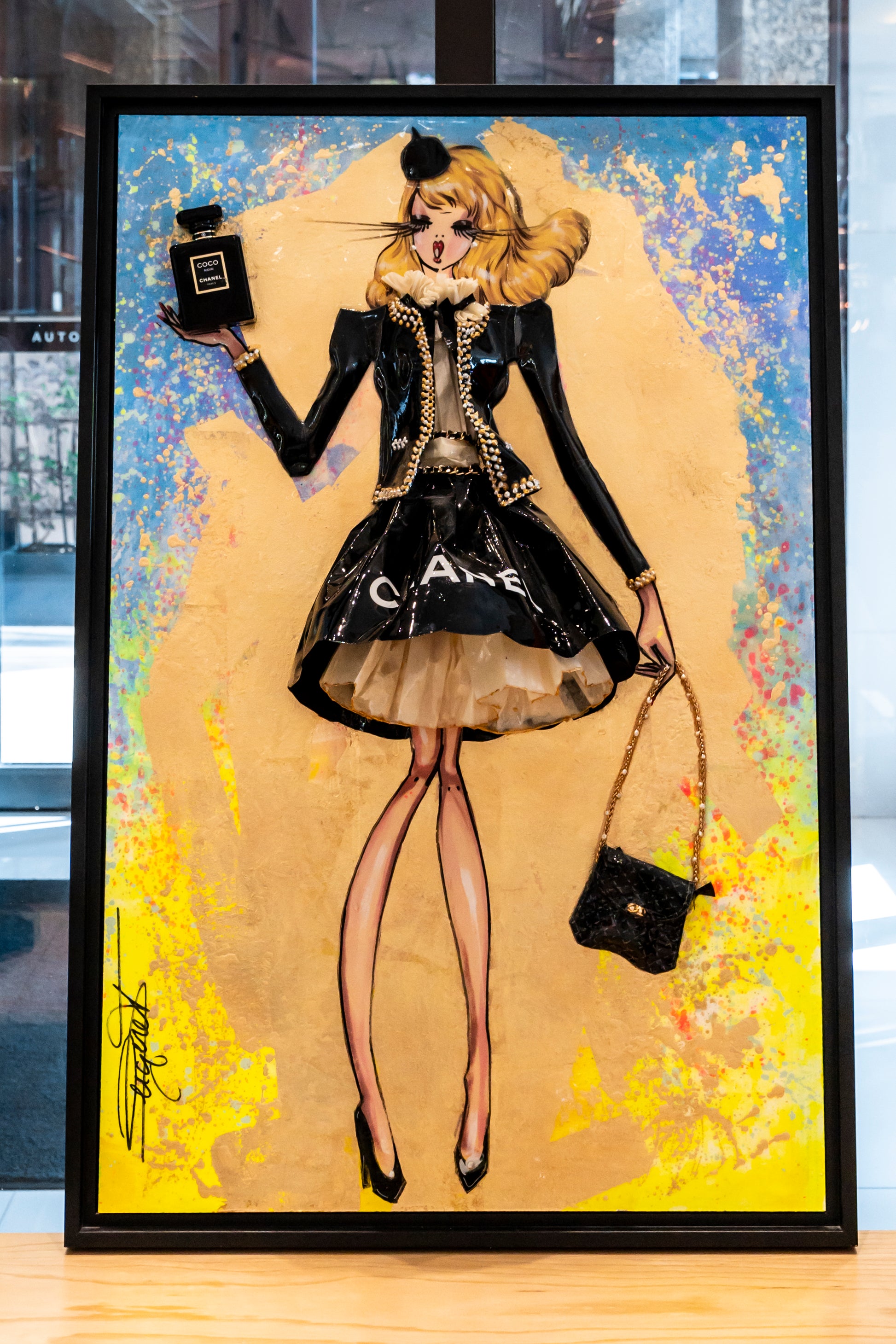 Information : Rachel, stylist by trade, created her heroine more than 10 years ago. We call it ''La Parisienne'': The wavy hair, the dominance of gold by Gustav Klimt, the audacity of Toulouse Lautrec and the modernity of Edmond Kiraz have greatly influenced Rachel since her early childhood. Thanks to her creativity, Rachel thus composes three-dimensional works with a predominance for painting and recycling brand bags, perfume bottles from major brands such as Dior, Chanel, Hermès, Louis Vuitton, Gucci, YSL... of gold, pearls, flowers will come together under his brushstrokes to give unique works. Rachel is a popular French artist that the fashion world adores. Her works are present in the collections of major designers and international collectors.