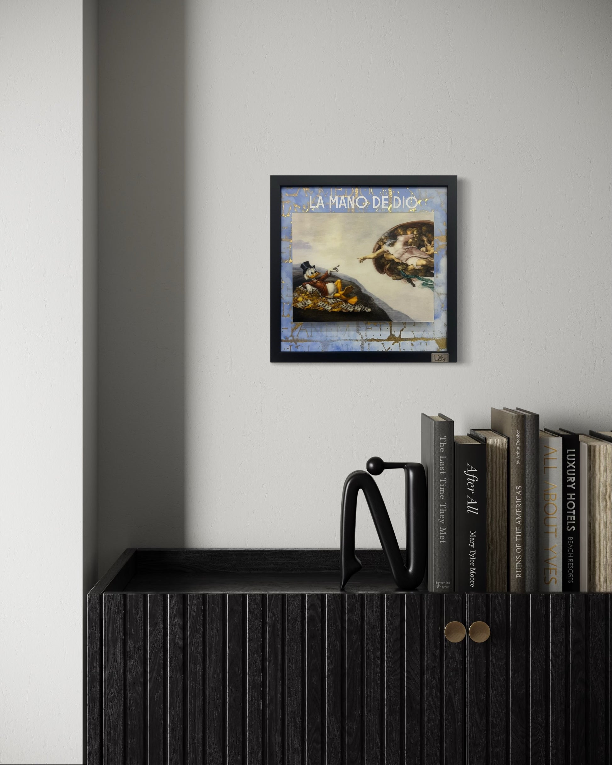 Drawing on Pop-Art influences from Warhol and Lichtenstein, Will B.’s canvases fuse past and present, fashion and culture. Kendall Jenner replaces superheroes; Brigitte Bardot shares space with Disney’s dogs, nodding to her love of animals. Fashion references—from Mario Testino to Hedi Slimane—intertwine with celebrity portraits, while symbols of religion and iconic brands like Apple, McDonald’s, and Coca-Cola collide in psychedelic chaos.