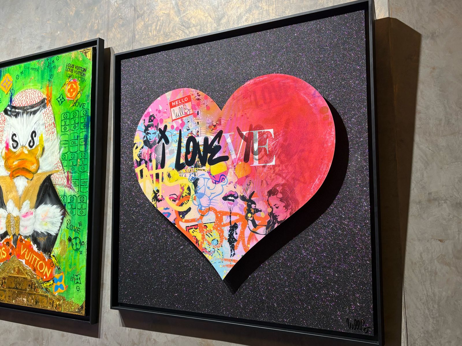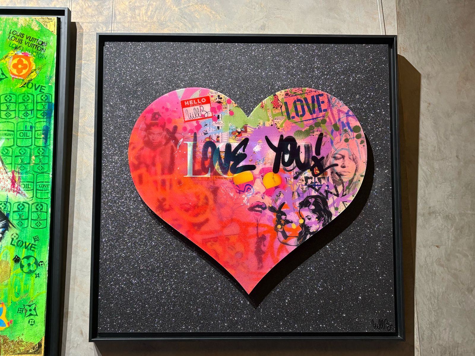 Drawing on Pop-Art influences from Warhol and Lichtenstein, Will B.’s canvases fuse past and present, fashion and culture. Kendall Jenner replaces superheroes; Brigitte Bardot shares space with Disney’s dogs, nodding to her love of animals. Fashion references—from Mario Testino to Hedi Slimane—intertwine with celebrity portraits, while symbols of religion and iconic brands like Apple, McDonald’s, and Coca-Cola collide in psychedelic chaos.